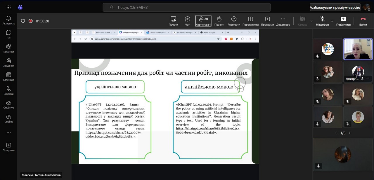Захід об’єднав здобувачів вищої освіти та науково-педагогічних працівників, зацікавлених у підвищенні рівня академічної культури та відповідального використання сучасних цифрових інструментів.