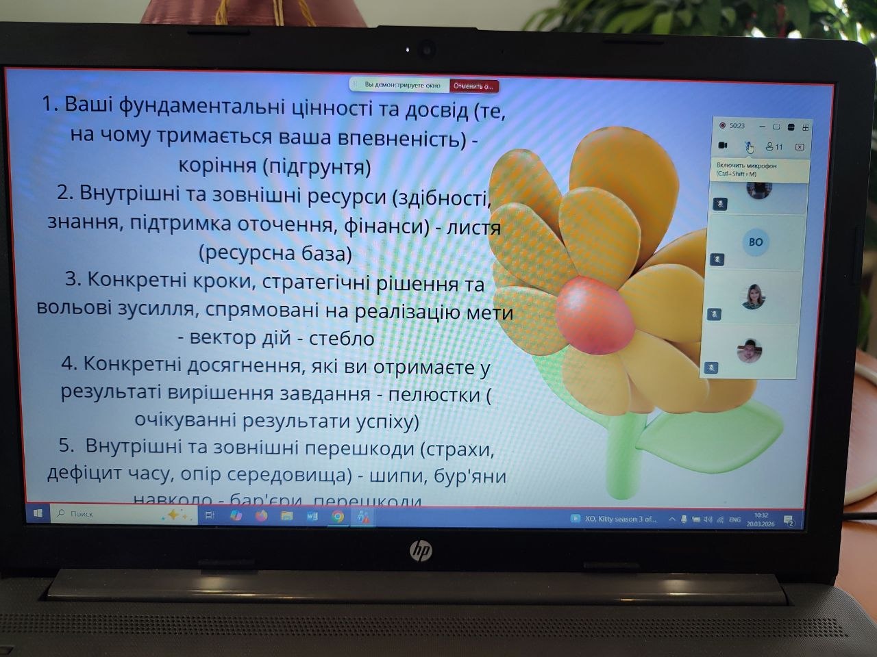 - ваші фундаментальні цінності та досвід (те, на чому тримається ваша впевненість) – коріння (підґрунтя);