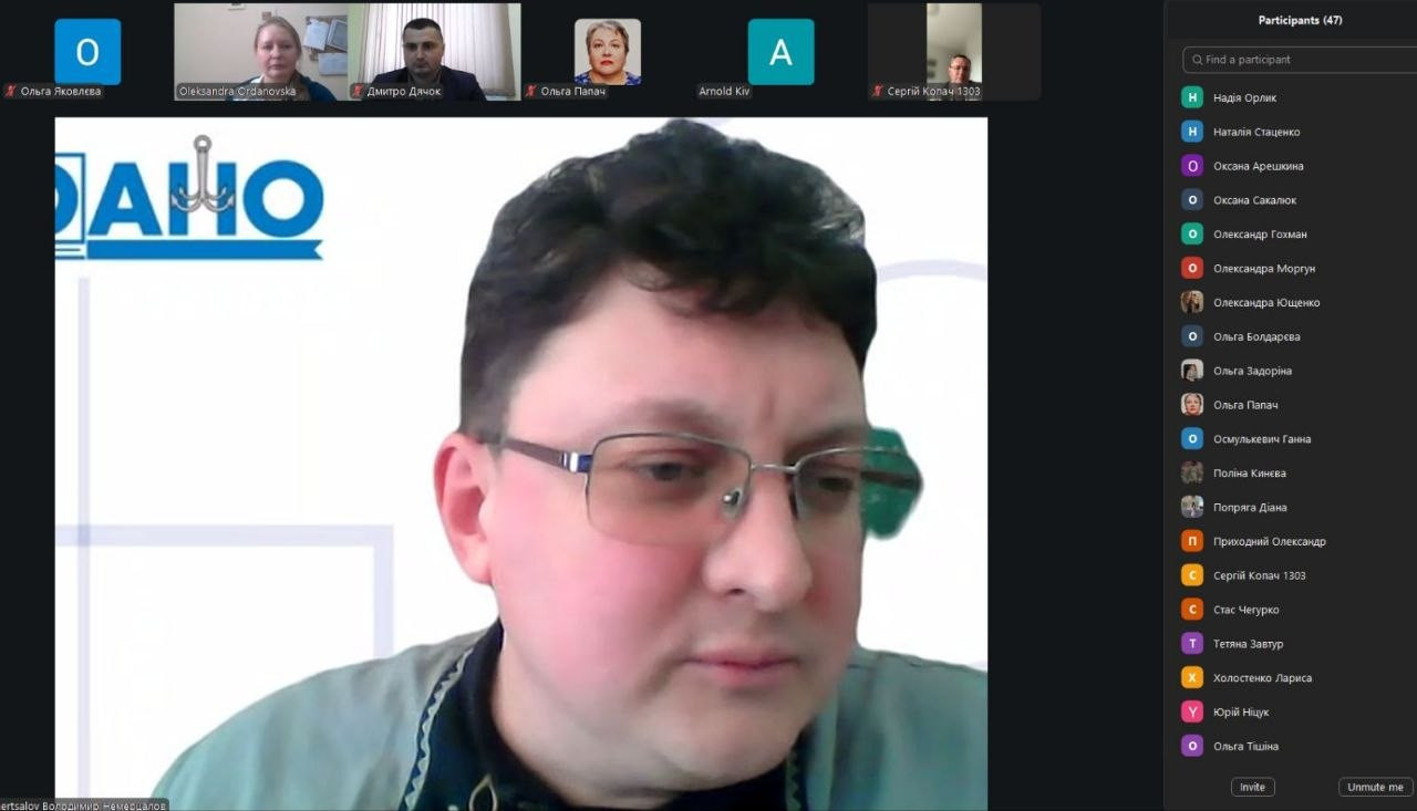 In the subsequent discussion, Volodymyr Nemertsalov emphasized the importance of students and future teachers’ training to implement and ensure a safe, health-preserving and inclusive educational environment. In this regard, Oleksandra Ordanovskaya noted that the formation of relevant competencies is ensured not only during the mastering of the educational components "Life Safety" and "Inclusive Education", but also during the internship, in particular through the implementation of the task of analyzing the educational environment of the classroom taking into account the inclusivity and safety of the educational process.