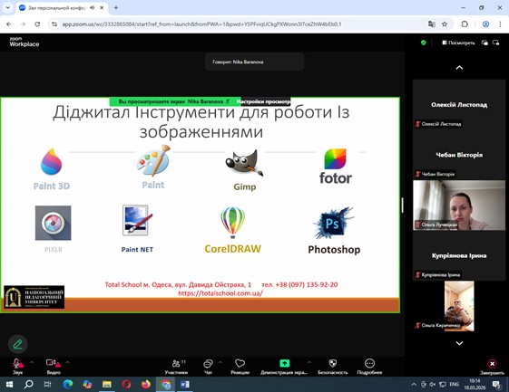 18 березня 2026 року на факультеті дошкільної педагогіки та психології, в дистанційному форматі, Баранова Вероніка Володимирівна – кандидат педагогічних наук, викладач Мовної школи «Total SCHool», провела гостьову лекцію «Цифрові технології в освіті» в межах навчальної дисципліни «Діджиталізація освіти» для здобувачів другого (магістерського) рівня освіти за освітньо-професійною програмою «Дошкільна освіта. Управління закладом дошкільної освіти». На гостьовій лекції були присутні: Кириченко Ольга Станіславівна – стейкхолдер, директор Одеського закладу дошкільної освіти «Ясла-садок» №228 комбінованого типу Одеської міської ради; Листопад Олексій Анатолійович – завідувач кафедри дошкільної педагогіки, доктор педагогічних наук, професор Університету Ушинського; Мардарова Ірина Костянтинівна – кандидат педагогічних наук, доцент кафедри дошкільної педагогіки Університету Ушинського.