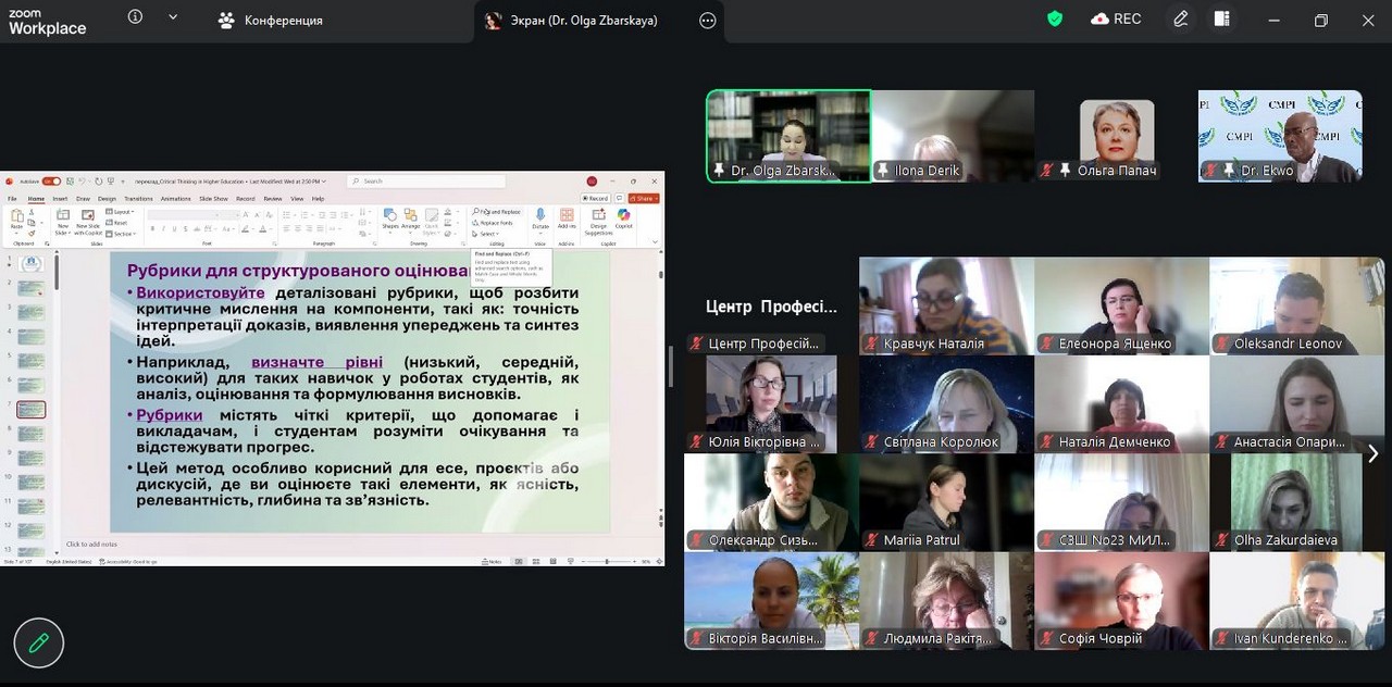 Програму стажування офіційно розпочато на базі Інститут креативного мислення «ОЗ КРЕДО» за підтримки Південноукраїнського центру професійного розвитку керівників та фахівців соціономічної сфери у межах підписаного договору про співпрацю та реалізації міжнародного освітнього проєкту «ThinkEDU: розвиток критичного мислення в ситемі підготовки кадрів». До участі долучилися представники 41 закладу вищої освіти з 22 областей України, що свідчить про високий рівень зацікавленості освітян у розвитку критичного мислення як ключової компетентності сучасності.