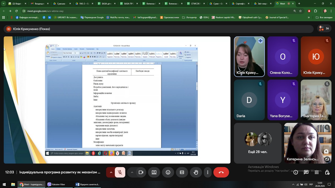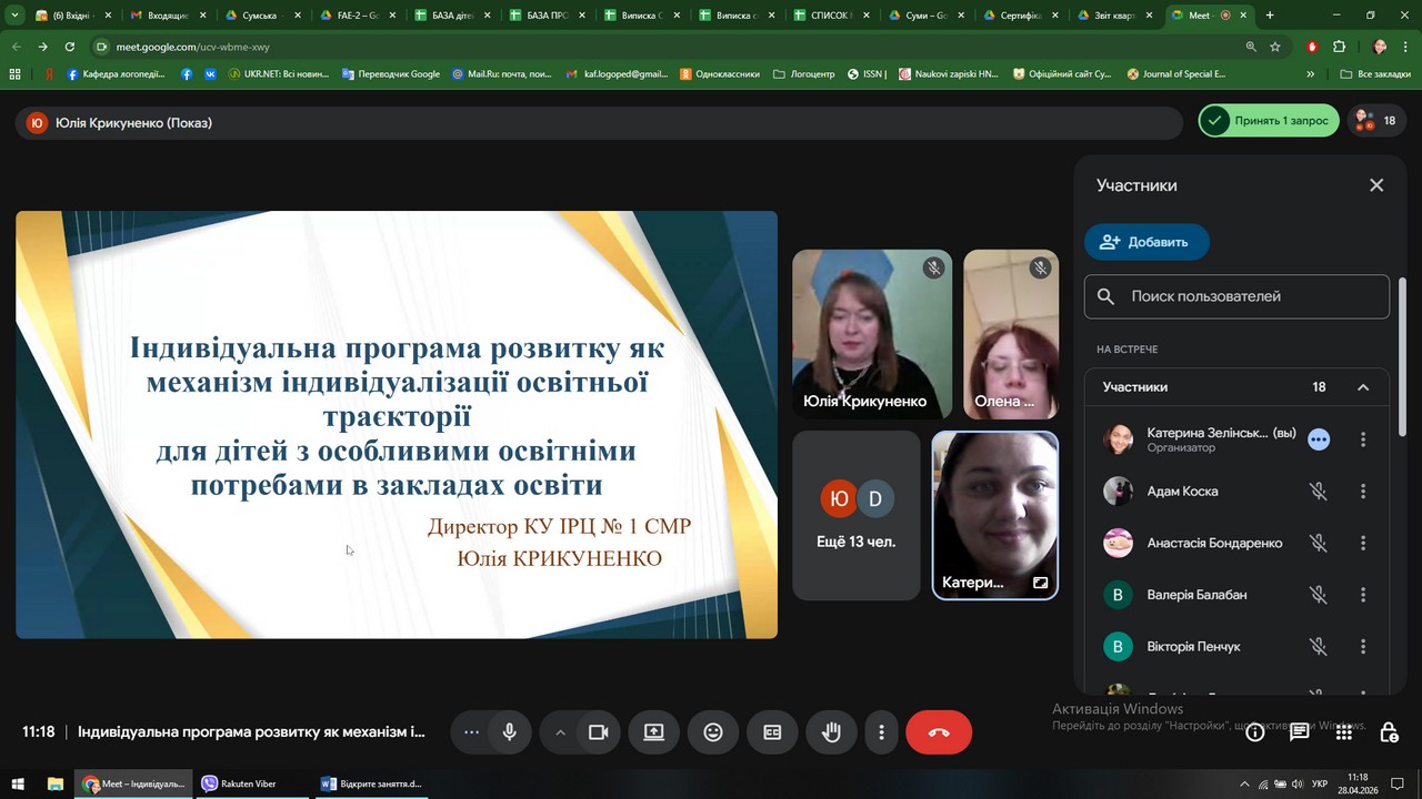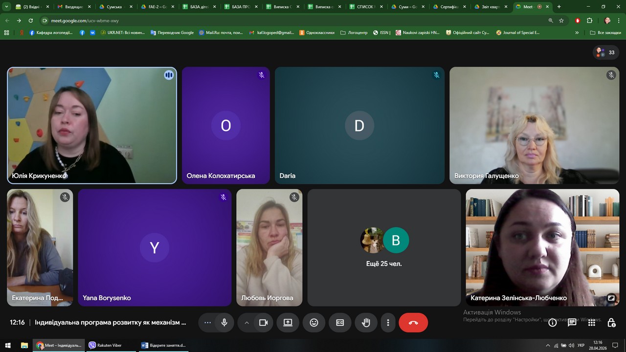 28 квітня 2026 року доцентом кафедри спеціальної та інклюзивної освіти Південноукраїнського національного педагогічного університету імені К.Д. Ушинського Катериною Олександрівною Зелінською-Любченко в рамках освітнього компонента «Організація та методика логопедичної роботи» організовано гостьову лекцію для здобувачів другого (магістерського) рівня вищої освіти спеціальності А6 Спеціальна освіта за темою «Індивідуальна програма розвитку як механізм індивідуалізації освітньої траєкторії для дітей з особливими освітніми потребами в закладах освіти». Лектор – директор ІРЦ №1 Сумської міської ради Юлія Олександрівна Крикуненко.