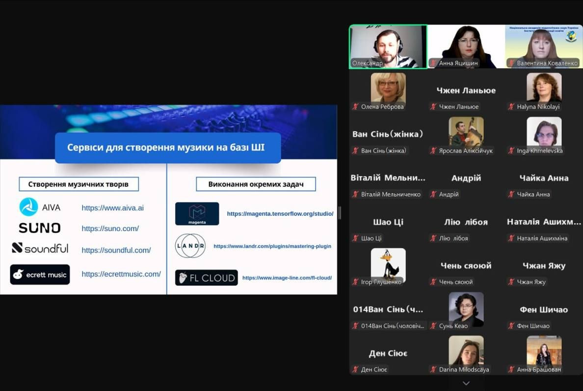 Слухачами були викладачі, аспіранти та магістранти; вони отримали цікаву інформацію з проблем можливості застосування штучного інтелекту в процесі генерації музичних творів; особливості застосування цифрових аудіо робочих станцій, зокрема, DAW, FL Studio. Студентам булло цікаво, як створити власні треки «з нуля» та у подальшій роботі скористатися можливостями вдосконалення музичних творів як продукту діяльності штучного інтелекту. Автор наголосив також на недоліках та попередив про можливі «гострі куті» щодо застосування такої музики. Разом з тим, окреслив й позитивні боки процесу співпраці зі штучним інтелектом в проєктних, освітніх процесах та в різних сферах діяльності людини, де музика відіграє свої різноманітні соціокультурні функції.