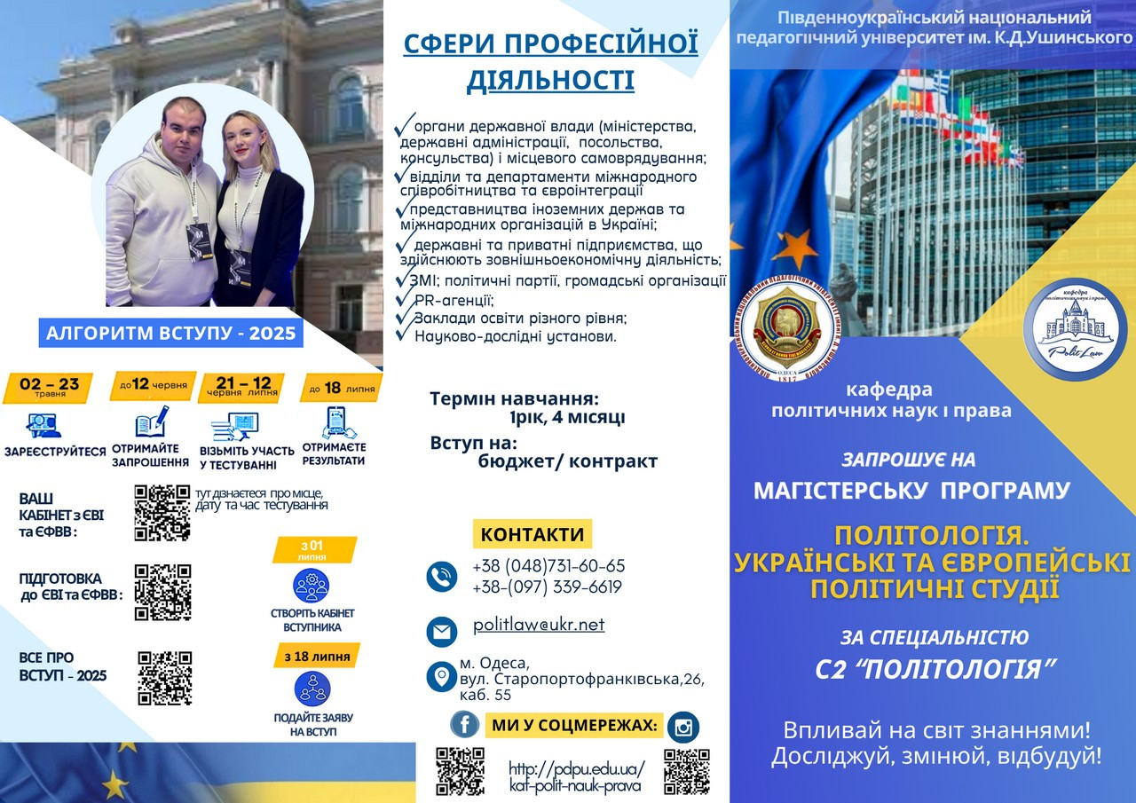 Магістратура. ОПП “Політологія. Українські та європейські політичні студії”