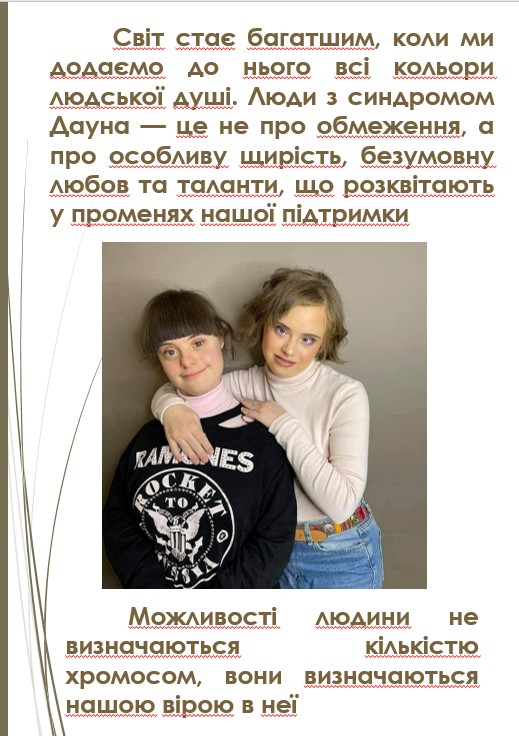 21 березня – дата символічна. Це 21-й день третього місяця, що нагадує про трисомію 21-ї хромосоми – генетичну особливість, яка робить людей із синдромом Дауна унікальними.