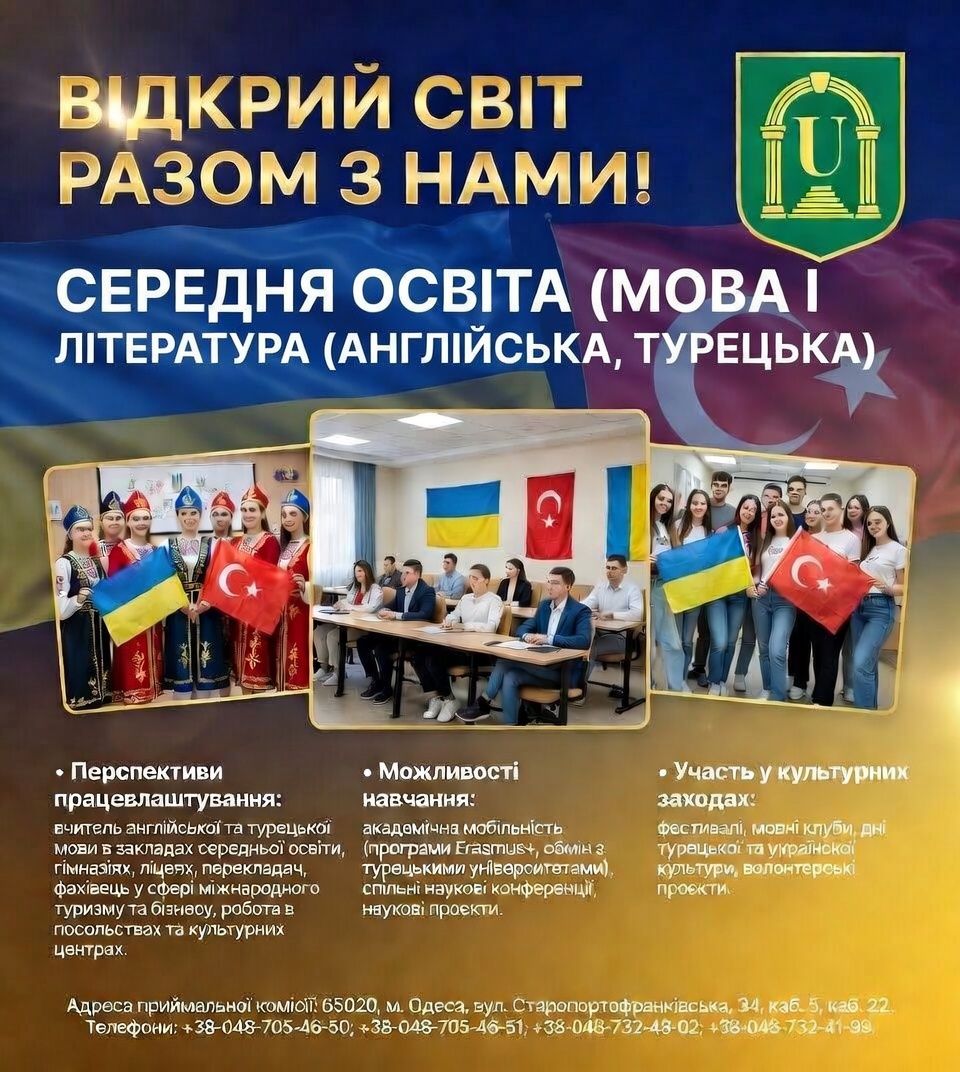 Раді повідомити, що на кафедрі германських та східних мов та методики їх навчання відкривається нова освітньо-професійна програма Середня освіта (Мова і література (англійська,турецька)).