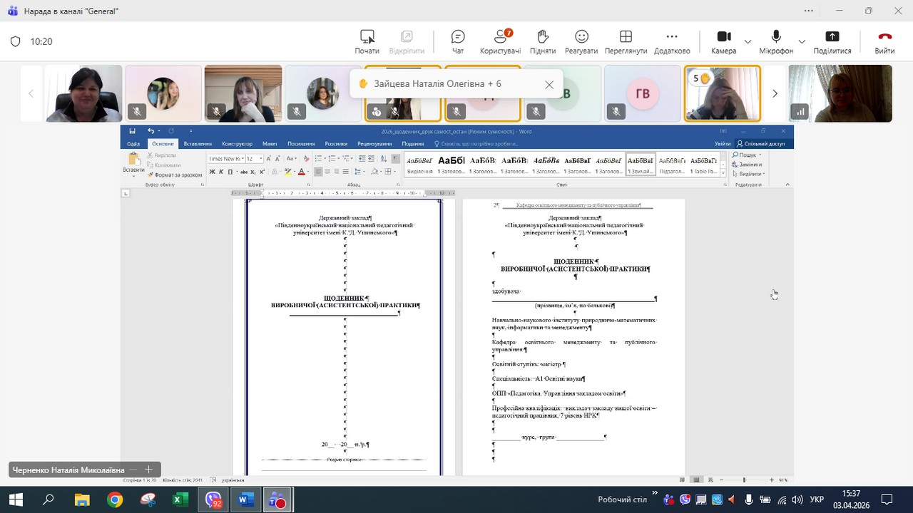 Особлива увага була приділена практичним аспектам взаємодії з методистами. Доцент кафедри Крістіна Тамбовська разом із колегами детально роз’яснила графік проходження практики, порядок оформлення щоденників та критерії оцінювання результатів.