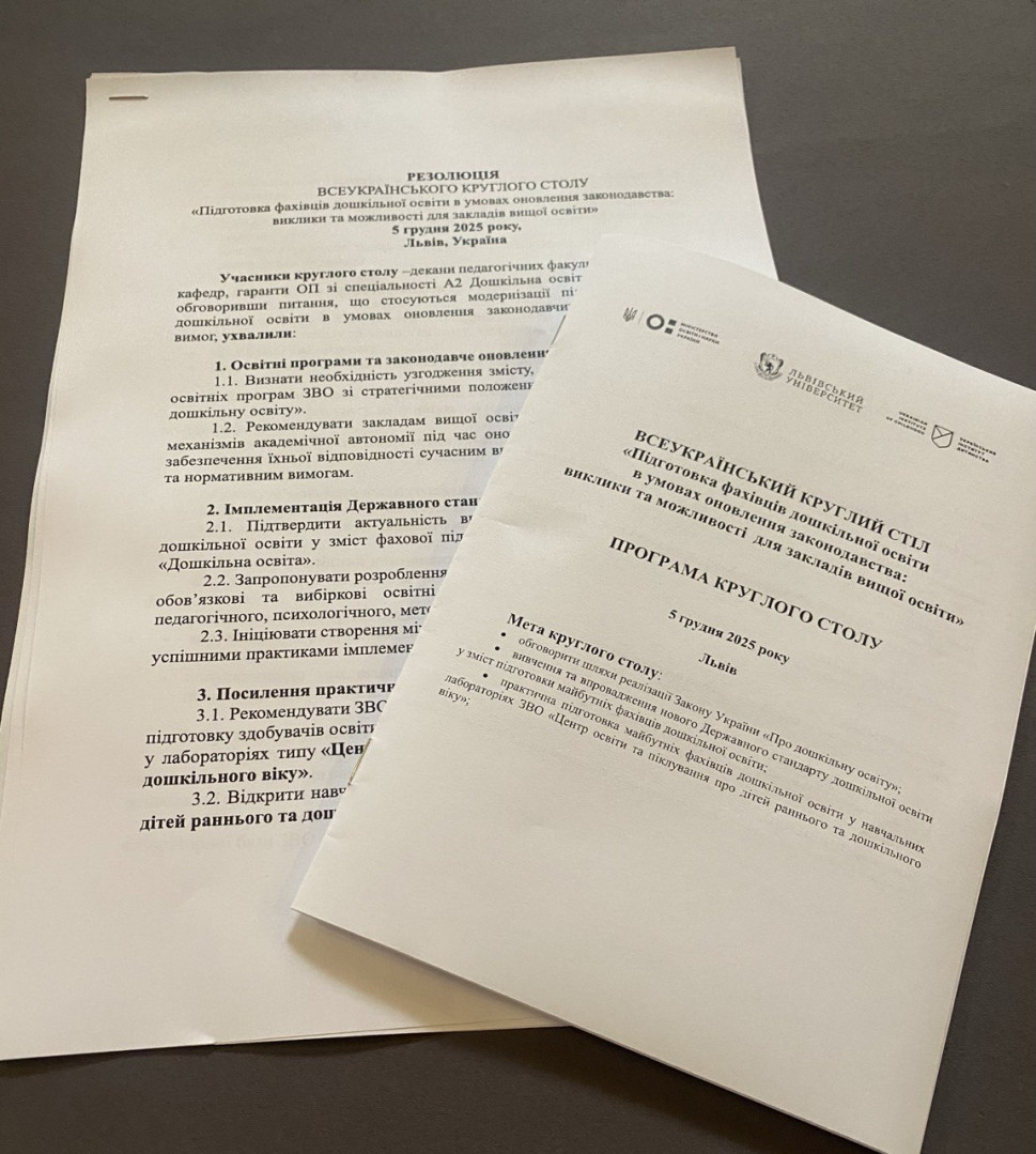 5 грудня 2025 року у Львівському національному університеті імені Івана Франка відбувся Всеукраїнський круглий стіл «Підготовка фахівців дошкільної освіти в умовах оновлення законодавства: виклики та можливості для закладів вищої освіти». У заході взяла участь завідувачка кафедри теорії та методики дошкільної освіти, докторка педагогічних наук, професорка Людмила Березовська, яка представила актуальні напрями оновлення професійної підготовки майбутніх вихователів та окреслила ключові виклики для закладів вищої освіти в умовах модернізації законодавчої бази дошкільної освіти.