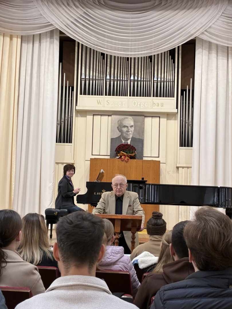 4 листопада 2025 року викладачі та здобувачі Навчально-наукового інституту музичного і перформативного мистецтва та соціокультурних практик (ННІМПМСП) відвідали майстер-клас заслуженого артиста Молдови, професора кафедри хорового диригування ОНМА імені А. В. Нежданової Жоржа Косинського. Ім'я Жоржа Христофоровича Косинського міцно вписано в історію музично-педагогічного факультету Університету Ушинського, де він протягом багатьох років плідно працював, передаючи свій безцінний досвід не одному поколінню студентів. Серед численної кількості випускників професора Косинського є видатні хормейстери, які отримали почесні звання, стали викладачами та очолили провідні творчі колективи. Тематика майстер-класу охоплювала ключові принципи хорової роботи Костянтина Пігрова. Професор Косинський, як послідовник та носій традицій української хорової школи, не лише теоретично висвітлив ці принципи, але й детально продемонстрував їхнє практичне застосування. Зокрема, він наочно представив особливості роботи над формуванням хорового звуку (включаючи темброву єдність та чистоту інтонації), присвятив увагу відпрацюванню чіткої та виразної артикуляції, а також досягненню осмисленого хорового фразування. Крім того, професор торкнувся питань динамічної палітри та емоційного наповнення музичного твору, що є ключовим у методиці Костянтина Пігрова. Цей практичний показ став винятково цінним досвідом для всіх присутніх, надав студентам унікальну можливість безпосередньо побачити застосування класичних принципів у роботі хормейстера і зануритися у живі традиції української хорової школи.