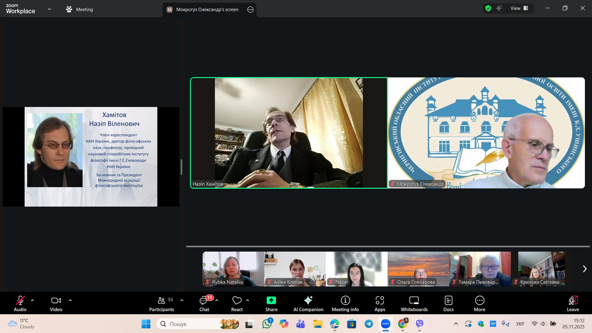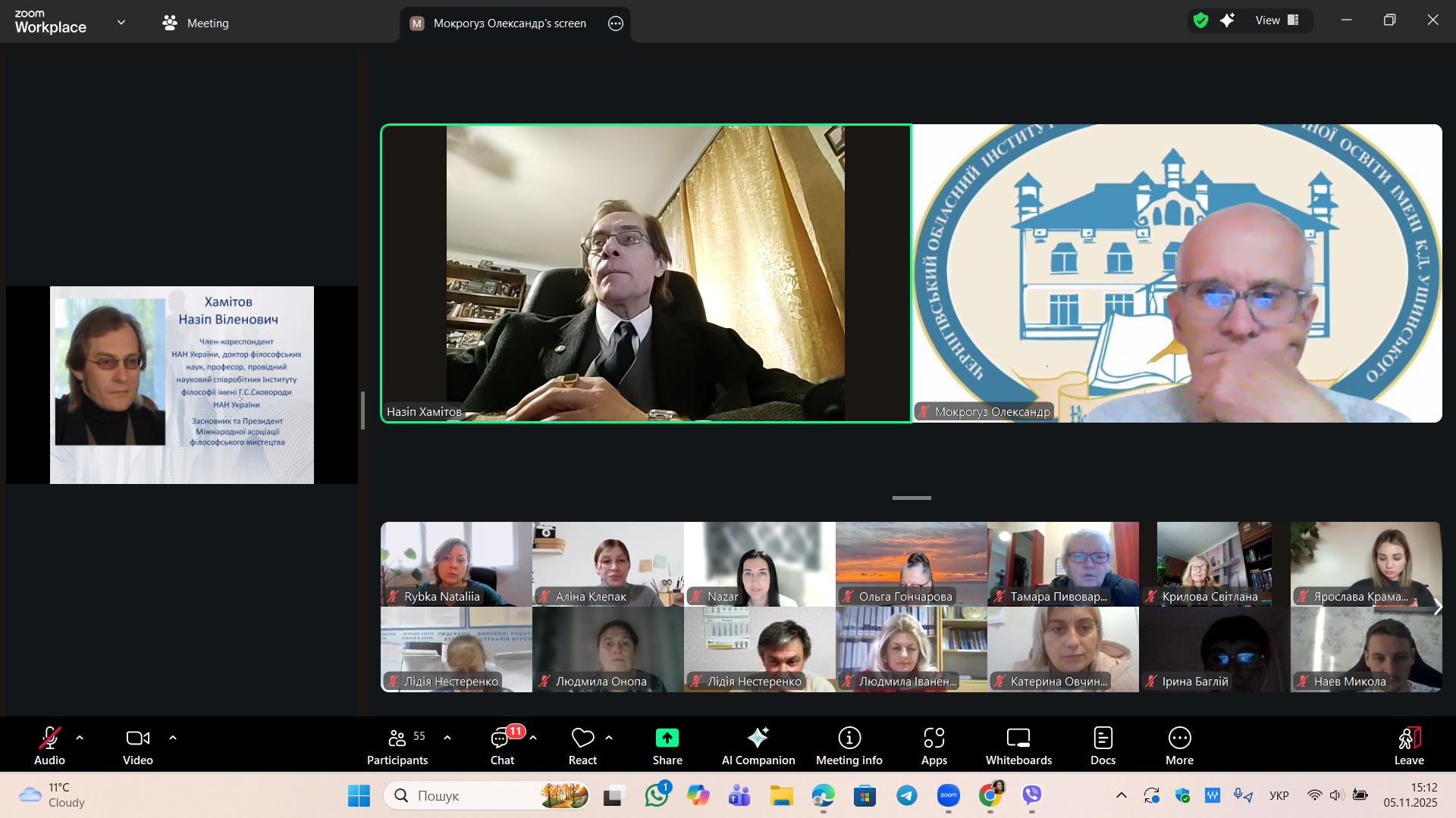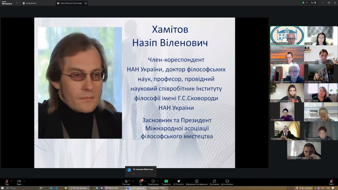 - Хамітов Назіп Віленович, член-кореспондент НАН України, доктор філософських наук, професор, провідний науковий співробітник Інституту філософії ім. Г. С. Сковороди НАН України, Президент Міжнародної асоціації філософського мистецтва. Тема виступу: «Метаантропологія історії і новий гуманізм: контексти науки і освіти».
