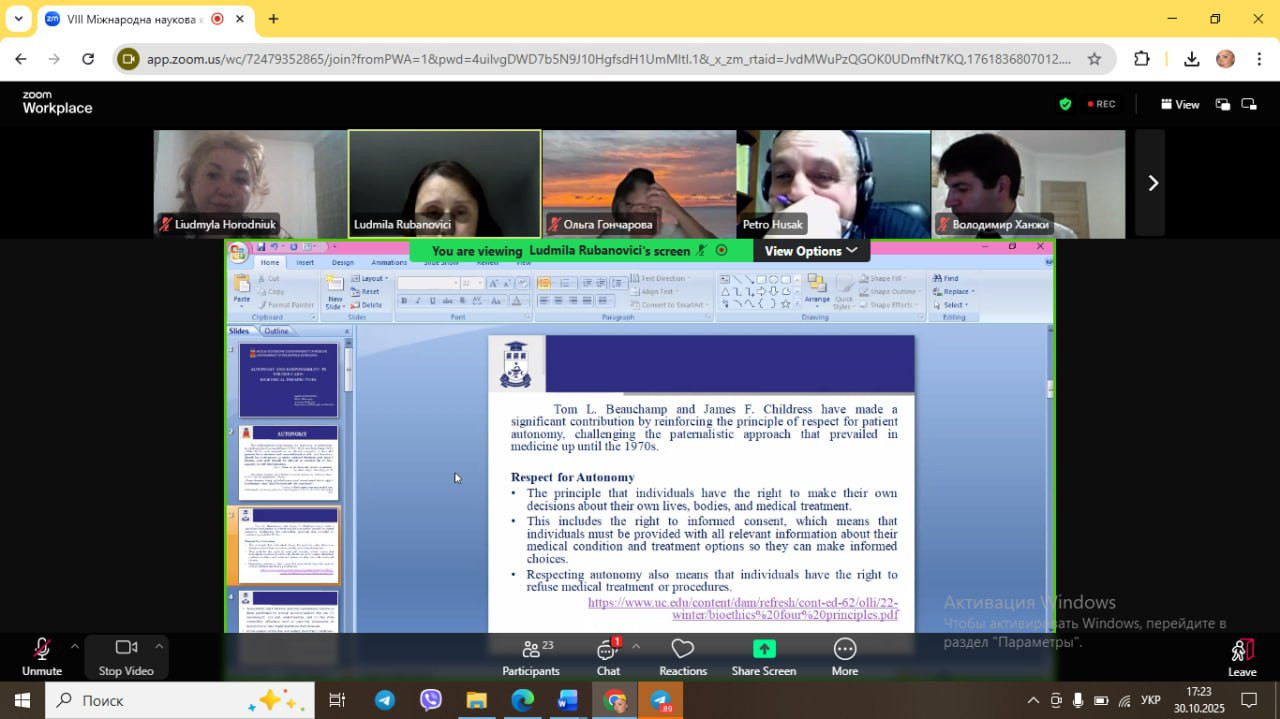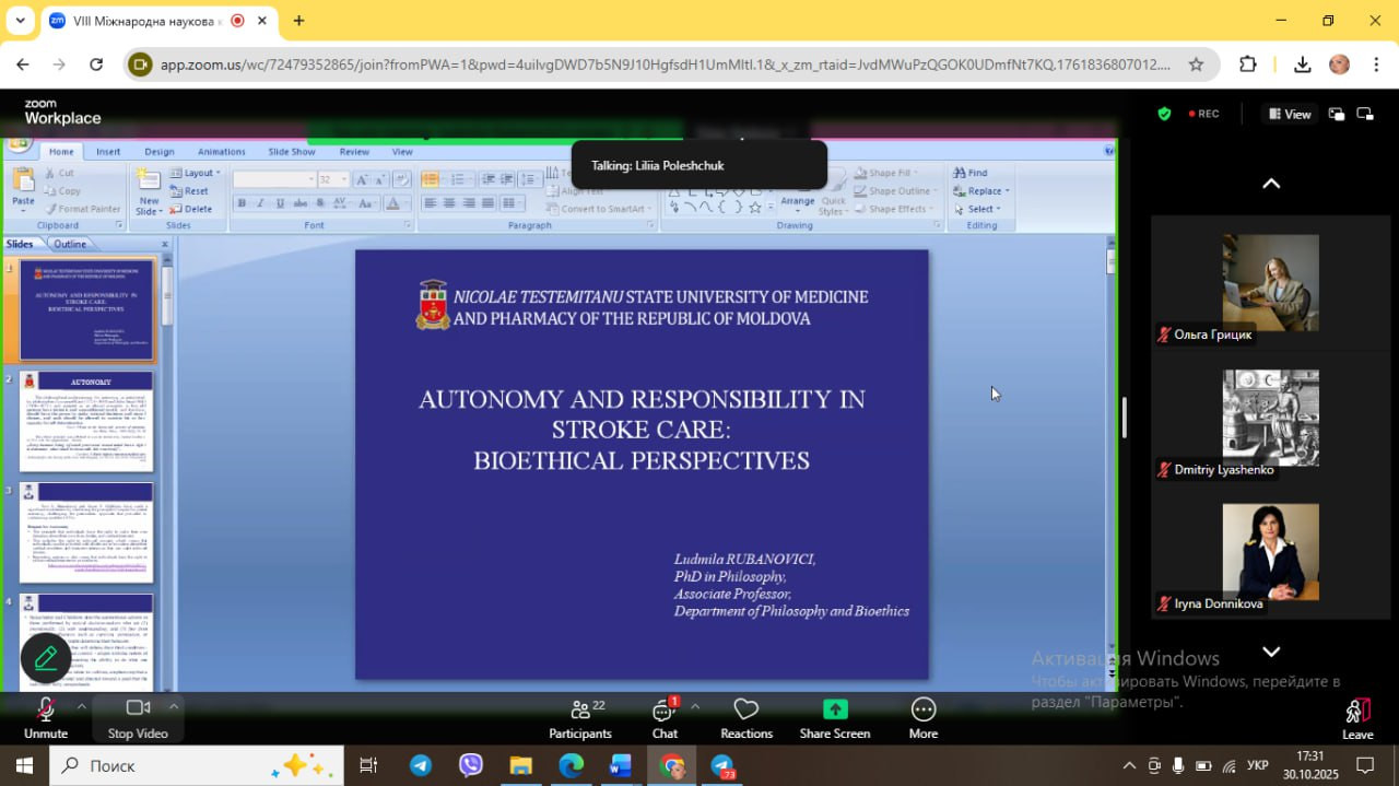 30 жовтня 2025 року мали честь долучитися до глибокої й натхненної наукової події, яка об’єднала філософів, науковців, освітян, медиків, культурологів і митців навколо ідеї зцілення людини як цілісної істоти – біологічної, духовної, соціокультурної. Учасники обговорювали сучасні виклики людського буття, проблеми здоров’я, духовності, етики, науки та мистецтва зцілення у контексті глобальної невизначеності. Серед ключових напрямів – медична антропологія, філософія здоров’я, біоетика, нооетика, релігійні та культурні виміри відновлення людини, а також філософсько-педагогічні підходи до формування культури зцілення через освіту. Особливу увагу привернуло засідання Круглого столу «Концептуалізація як філософсько-методологічна засада дослідження науки», де учасники дискутували про взаємозв’язок філософського мислення, науки й суспільних трансформацій. В конференції взяли участь науково-педагогічні працівники кафедри, аспіранти ОНП «Філософія», а також члени студентського наукового гуртка «Південноукраїнські наукові студії». Особливо хочемо відзначити наукові розвідки Людмили Городнюк, аспірантки 4-го року навчання на тему «Цифрова людина в онтологічній системі «людина-гаджет»: феноменологія віртуальної поведінки та станів свідомості» та Нелі Чабан, аспірантки 4-го року навчання на тему «Біотехнологічне підприємництво у філософському дискурсі: від homo economicus до homo creative» Такі наукові зустрічі вкотре доводять: інтеграція філософії, науки та мистецтва є ключем до осмислення людини у світі, що змінюється. Вони надихають, сприяють розвитку міждисциплінарного діалогу й формують спільноту дослідників, які мислять цілісно.