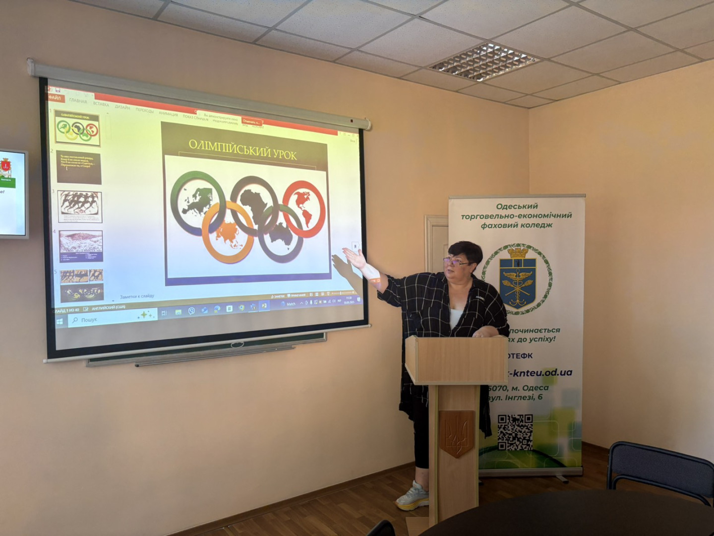 19 вересня 2025 року Тітова Ганна Віталіївна – гарант ОПП А4.11 Середня освіта (Фізична культура) першого (бакалаврського) рівня вищої освіти, к.пед.н., доцент, доцент кафедри спортивних ігор і менеджменту фізичної культури Університету Ушинського виступила спікеркою на засіданні круглого столу на тему «Олімпійський рух – історія та виклики сьогодення», якій проходив на базі Одеського торговельно-економічного фахового коледжу.
