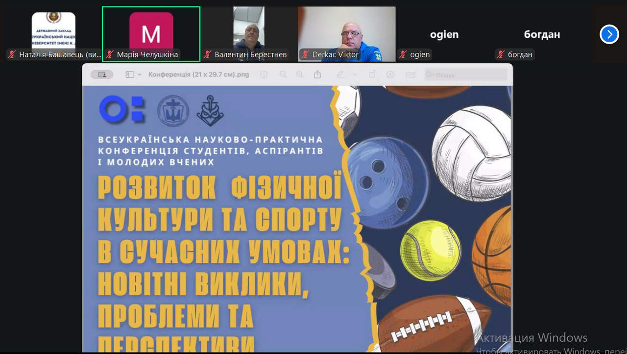 Здобувачі вищої освіти за другим (магістерським) рівнем ОПП Середня освіта (Фізична культура) 31 жовтня 2025 року (онлайн) взяли участь у роботі пленарного та секційних засідань Всеукраїнської науково-практичної конференції студентів, аспірантів і молодих вчених «Розвиток фізичної культури та спорту в сучасних умовах: новітні виклики, проблеми та перспективи», яка відбулася в Національному університеті кораблебудування імені адмірала Макарова (м. Миколаїв).