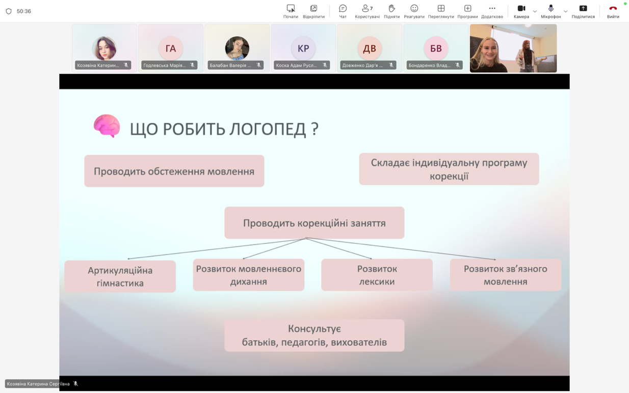 Основною метою зустрічі було поглиблення уявлень студентів про зміст, цінність і перспективи професії логопеда, формування позитивної мотивації до навчання за фахом та розвитку професійних якостей майбутнього спеціаліста.