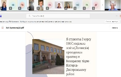 Під час звітної конференції здобувачі презентували фото- та відео- звіти, що були насичені практичними завданнями та яскравими матеріалами. Незважаючи на онлайн-формат проведення конференції, захід вразив своєю результативністю, а доповіді здобувачів – змістовністю, інформативністю, максимальним розкриттям етапів навчальної практики.