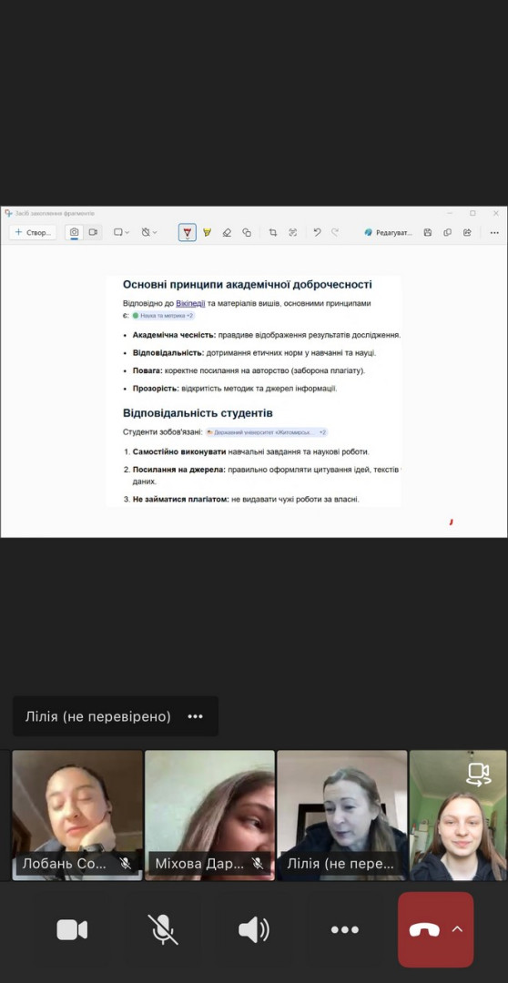 20 березня у межах Тижня доброчесності в Університеті Ушинського старшим викладачем кафедри спортивних ігор і менеджменту фізичної культури Лілією Прокоф’євою було проведено семінар для учасників наукового гуртка за темою «Етика наукових досліджень: відповідальність студентів та викладачів».