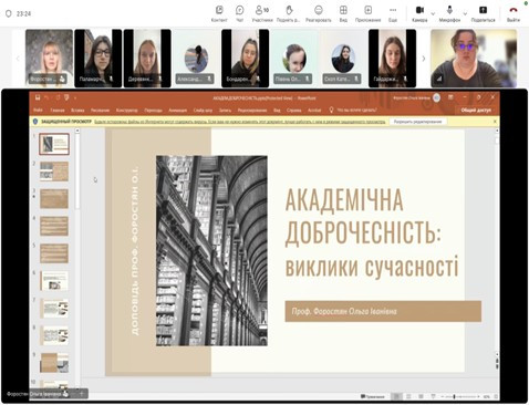 Для здобувачів другого (магістерського) рівня вищої освіти було організовано лекції, воркшопи та дискусії. Зокрема, професор Наталія Башавець провела виховну годину, а директор бібліотеки Максим Оксана - воркшоп щодо використання систем перевірки на плагіат та етичного застосування штучного інтелекту.