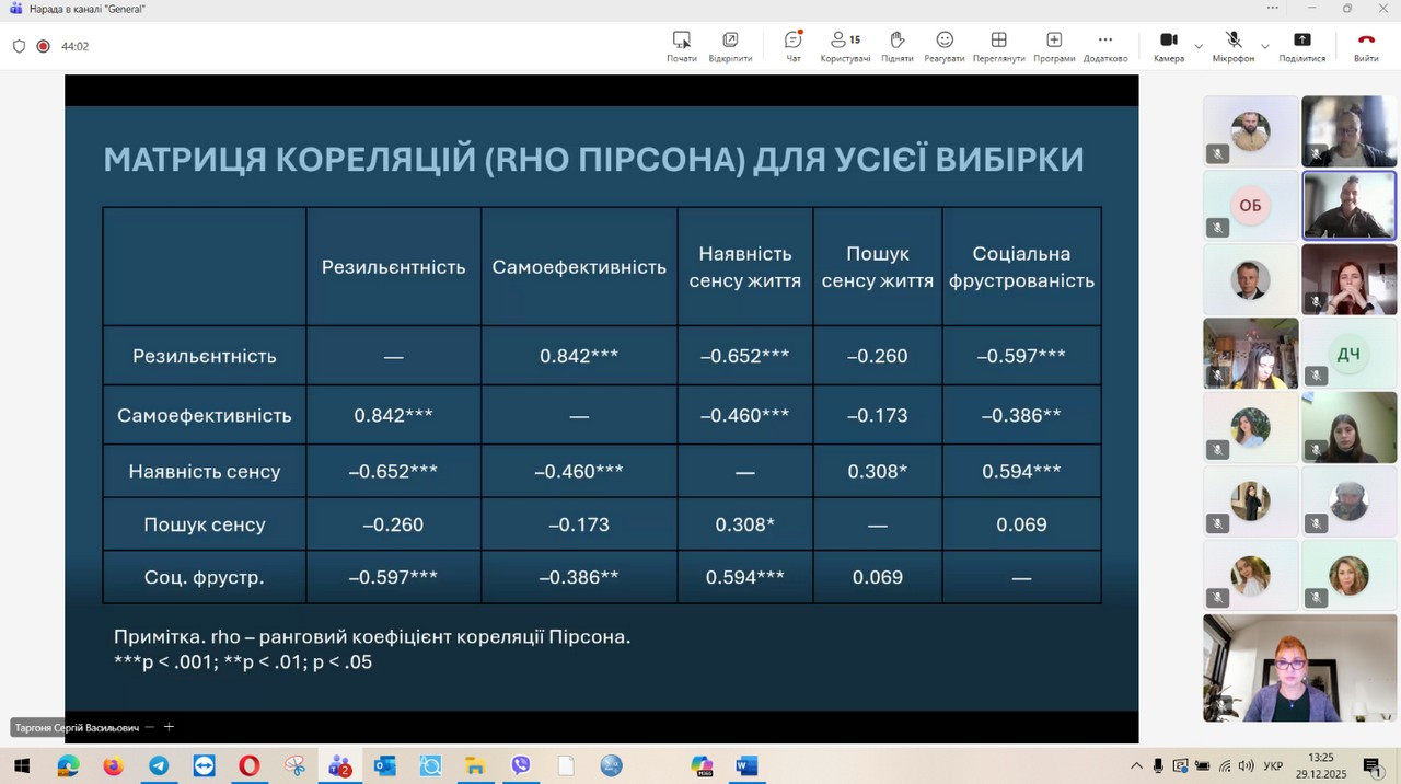 29 грудня 2025 року відбувся захист кваліфікаційних (магістерських) робіт здобувачів денної форми навчання за зазначеною освітньо-професійною програмою. Представлені магістерські дослідження продемонстрували високий рівень інтеграції теоретичних положень сучасної психологічної науки з практичними завданнями професійної діяльності психолога в умовах підвищеного стресу, невизначеності та соціальних трансформацій, зумовлених воєнним станом. Зміст робіт охоплював широкий спектр проблем, пов’язаних із психологічним супроводом особистості в кризових та екстремальних умовах, дослідженням адаптаційних можливостей, стресостійкості та ресурсного потенціалу людини, а також розробкою й апробацією практичних моделей психологічної допомоги різним категоріям населення. Особливий акцент було зроблено на аналітичному осмисленні складних психологічних феноменів, умінні обґрунтовувати вибір методів психодіагностики та психокорекції, а також на професійній рефлексії результатів власного дослідження. За результатами захисту підтверджено, що випускники денної форми навчання за освітньо-професійною програмою «Практична психологія. Екстремальна та кризова психологія» досягли програмних результатів навчання, які передбачають здатність аналізувати та інтерпретувати поведінку людини в екстремальних ситуаціях, прогнозувати психологічні наслідки дії кризових чинників, ефективно організовувати професійну взаємодію та приймати відповідальні рішення в умовах підвищеної напруги. Магістранти продемонстрували готовність до надання кваліфікованої психологічної допомоги особистості у кризовому стані, спрямованої на мобілізацію її внутрішніх ресурсів, підтримку життєстійкості та психологічного відновлення, зокрема в умовах війни.