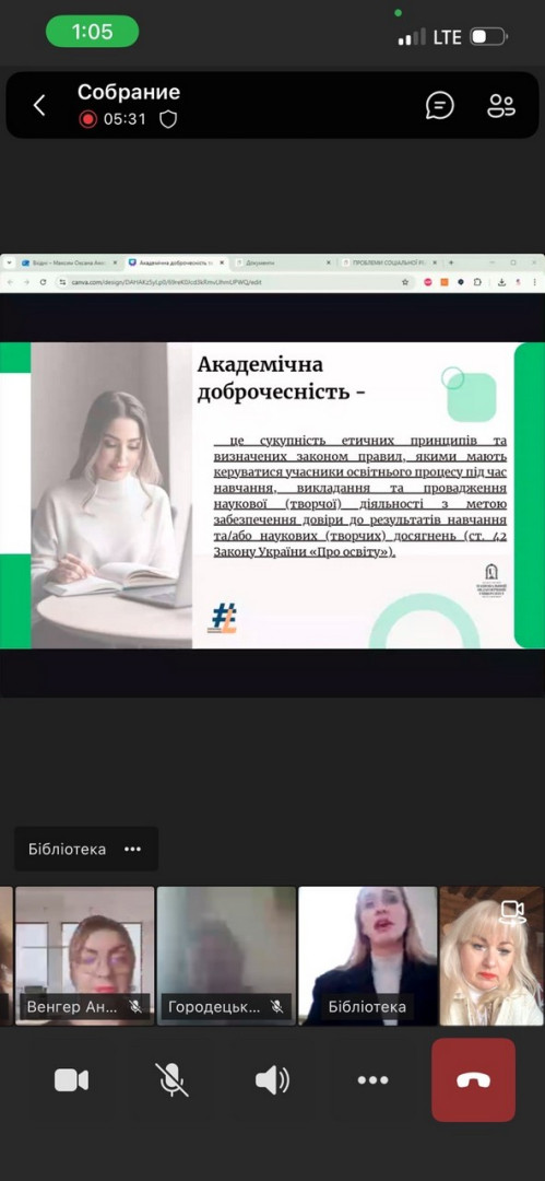 Зустріч було присвячено особливостям академічної доброчесності та використанню штучного інтелекту; узагальненим нормативним документам, які представлені у базі даних Університету Ушинського.