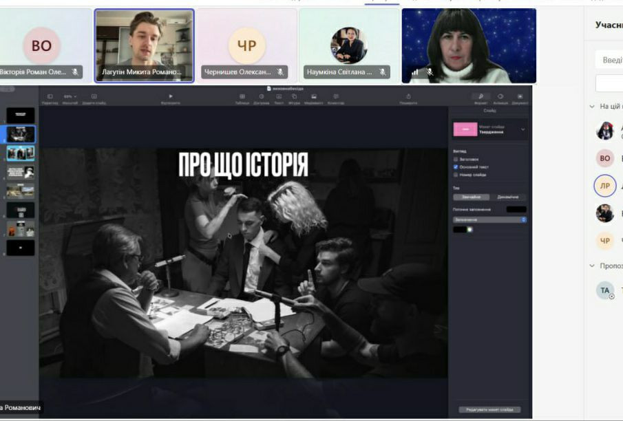 Вдумливо поговорили про делікатне мистецтво інтерв’ю в документальних стрічках. Викладачі і студенти розповіли власні історії підтримки наших захисників. На завершення бесіди поділилися психологічними прийомами адаптивного збереження психологічної стійкості та здатності розвиватися.