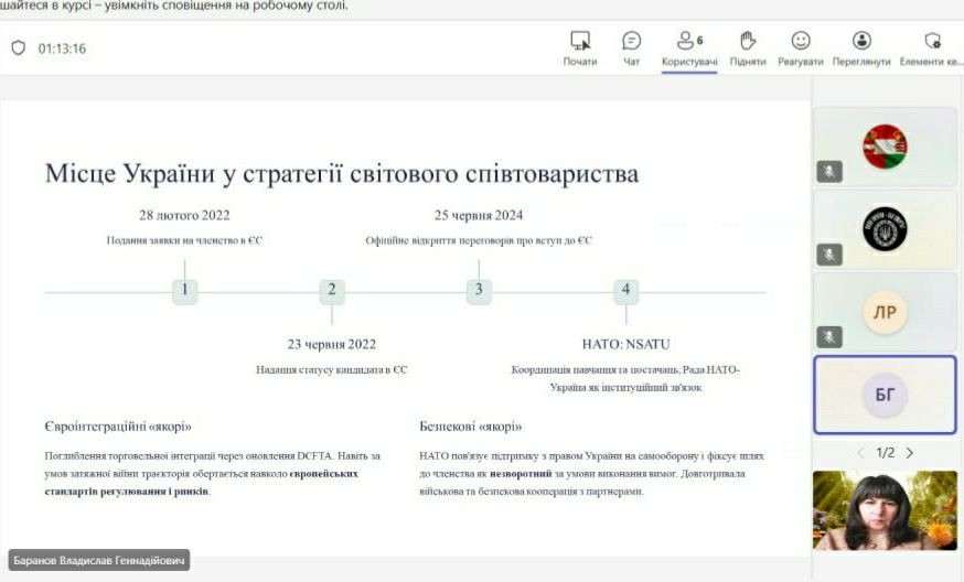Студент Анатолій Казюк проаналізував геополітичне становище України, акцентувавши на економічному й ціннісному вимірі європейської інтеграції та збереженні унікальної культурної спадщині України.