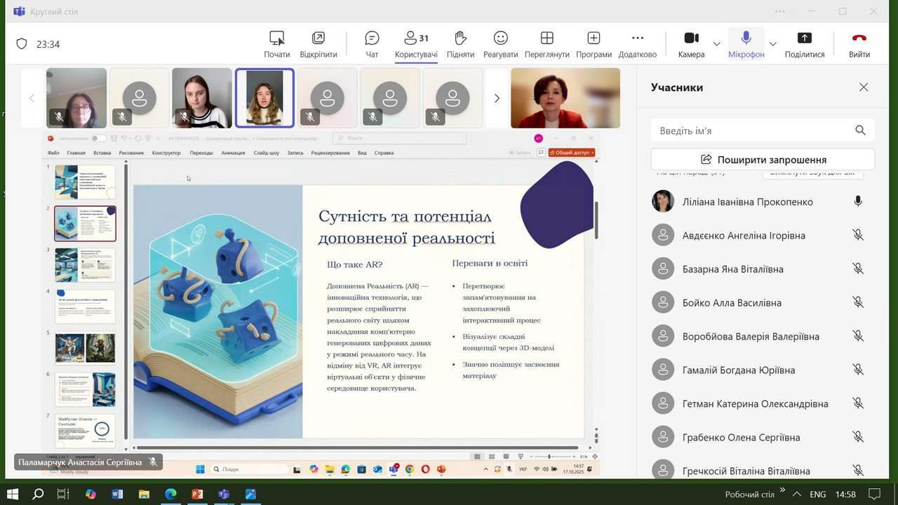Захід пройшов у змішаному форматі й об’єднав магістрантів історико-філологічного факультету та факультету іноземних мов обох форм навчання. Молоді науковці та викладачі разом шукали відповіді на запитання: яким має бути сучасний учитель-словесник, як поєднати академічні традиції з вимогами нового часу і що з європейського досвіду може стати орієнтиром для оновлення української освіти. Під час роботи круглого столу обговорювалися питання професійної мобільності, ролі цифрових технологій у лінгводидактичній підготовці, інтеграції міждисциплінарних підходів у навчальному процесі та підвищення якості педагогічної освіти в Україні.