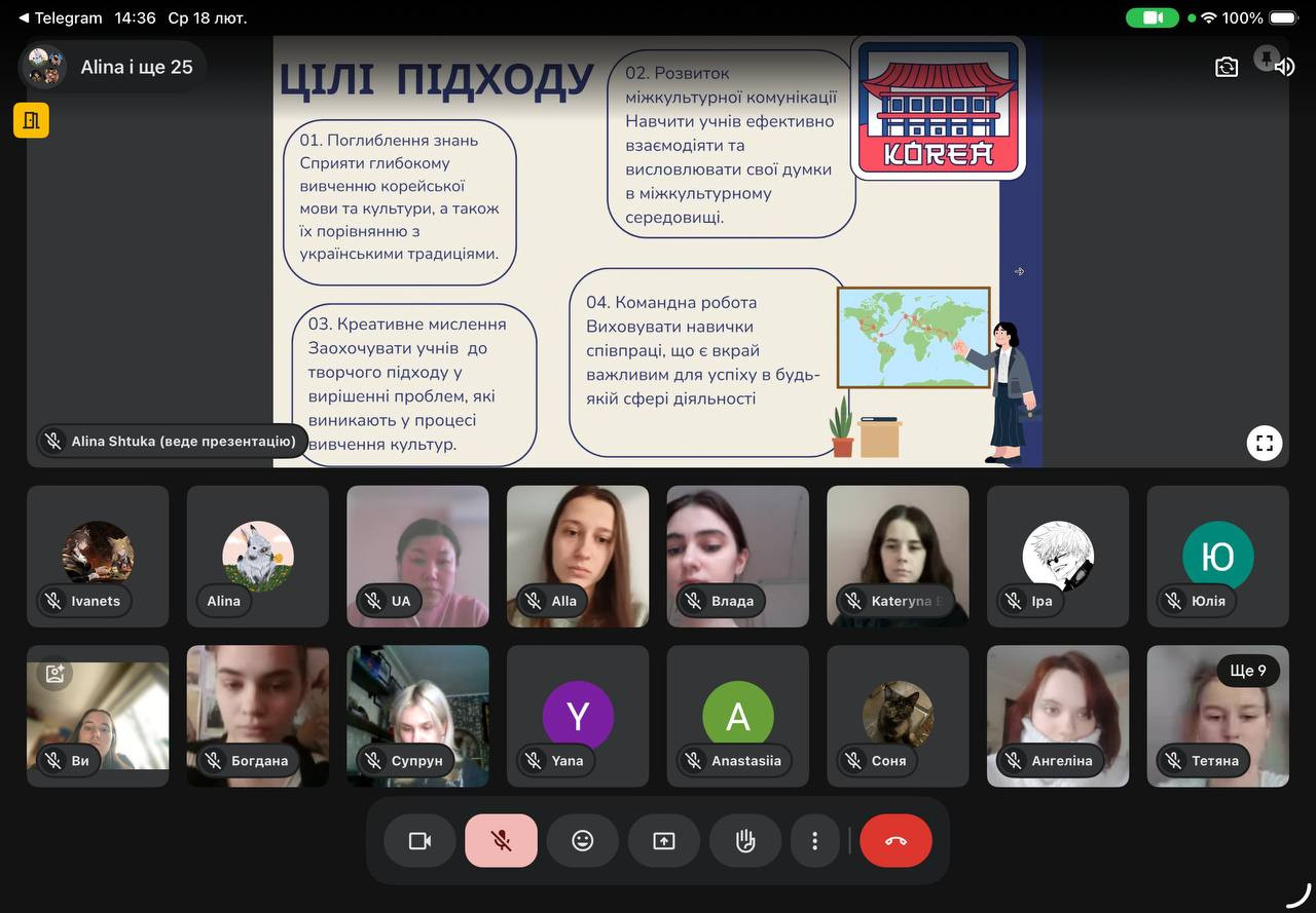 Під час майстер-класу студенти ознайомилися з методикою реалізації міжкультурних проєктів, особливостями інтеграції елементів культури Кореї та України в освітній процес, а також із практичними формами роботи у шкільному просторі.