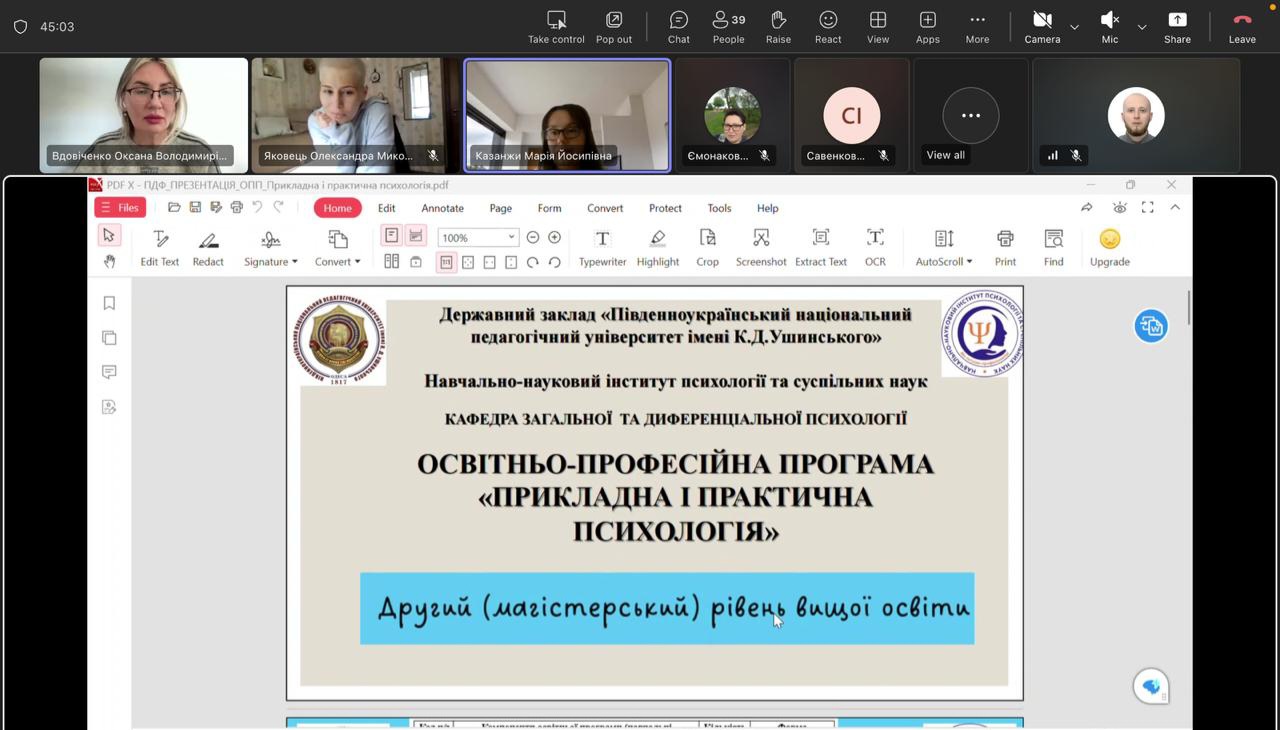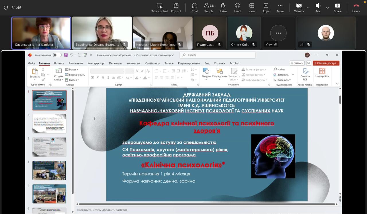15 квітня 2026 року відбулася зустріч зі студентами 4 курсу денної та заочної форм здобуття освіти першого (бакалаврського) рівня вищої освіти за участю директора Навчально-наукового інституту психології та суспільних наук Оксани Вдовіченко, завідувачів психологічних кафедр Університету Ушинського та гарантів освітньо-професійних програм: «Практична психологія. Екстремальна та кризова психологія» (професор Світлана Ситнік), «Клінічна психологія» (професор Ірина Савенкова), «Прикладна і практична психологія» (професор Микола Дідух).
