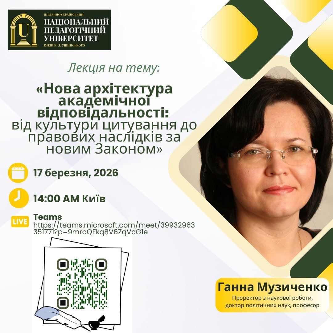 Відкриттям змістовної програми заходів стала лекція «Нова архітектура академічної відповідальності: від культури цитування до правових наслідків за новим Законом», яку 17 березня 2026 року провела проректор з наукової роботи, доктор політичних наук, професор Ганна Музиченко. У своїй доповіді спікерка акцентувала увагу на сучасних викликах академічної доброчесності, ролі правового регулювання та значенні відповідального ставлення до результатів освітньої і наукової діяльності.