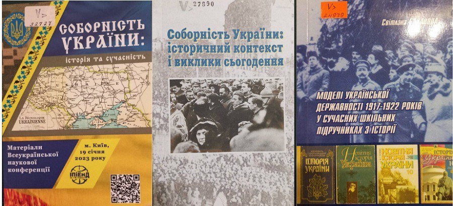 Представлені на виставці видання репрезентують доленосні сторінки історії українського державотворення – бурхливого перебігу революційних подій в Україні 1917–1921 рр. Наукові розвідки та сучасні напрацювання вітчизняної історіографії розкривають значення Акта Злуки, знайомлять з пантеоном видатних діячів цього періоду та їхнім внеском у загальну справу боротьби за нашу державність і свободу.