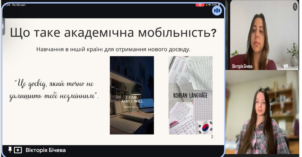 06 квітня 2026 року в рамках діяльності ОНІКЦ Республіки Корея в Університеті Ушинського відбулася профорієнтаційна зустріч з учнями Харківського ліцею №181 «Дьонсурі» в онлайн-форматі.