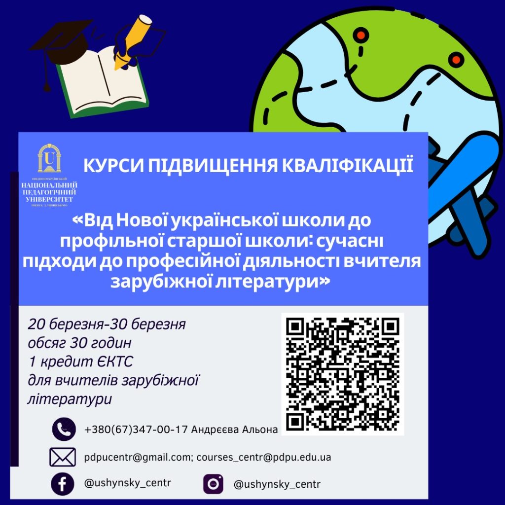 Курси підвищення кваліфікації для вчителів зарубіжної літератури на базі Південноукраїнського центру професійного розвитку керівників та фахівців соціономічної сфери!
