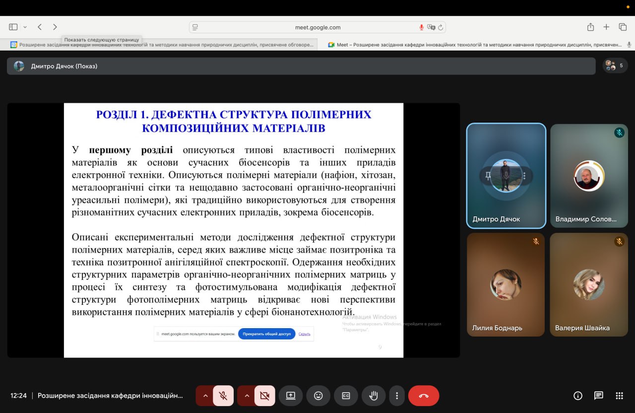 13 лютого 2026 року о 12:00 на платформі Microsoft Teams та у 24 авдиторії відбулося розширене засідання кафедри інноваційних технологій та методики навчання природничих дисциплін.