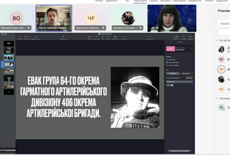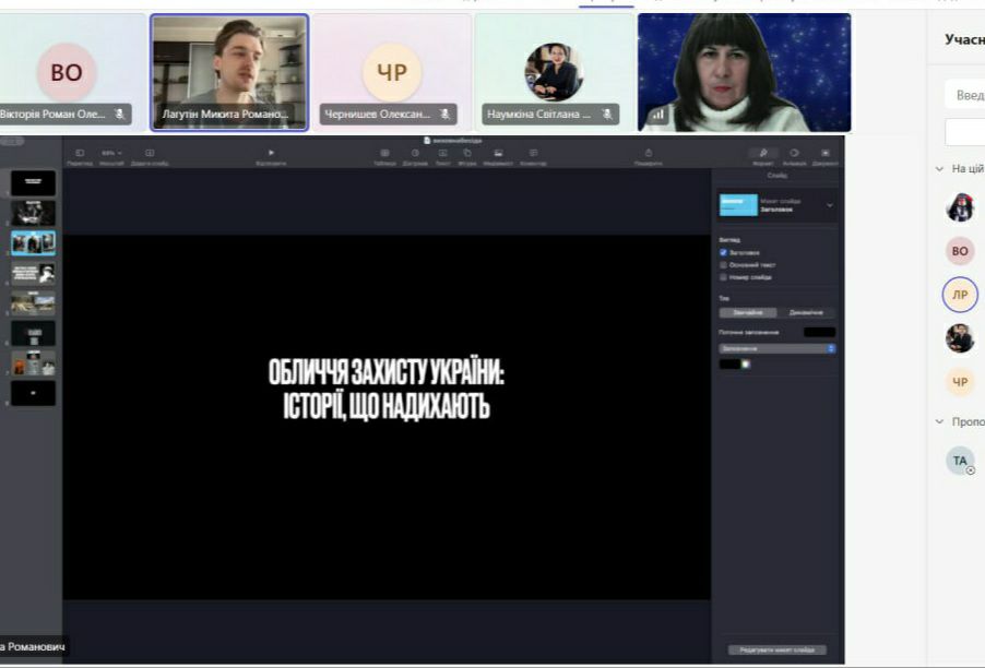Вдумливо поговорили про делікатне мистецтво інтерв’ю в документальних стрічках. Викладачі і студенти розповіли власні історії підтримки наших захисників. На завершення бесіди поділилися психологічними прийомами адаптивного збереження психологічної стійкості та здатності розвиватися.