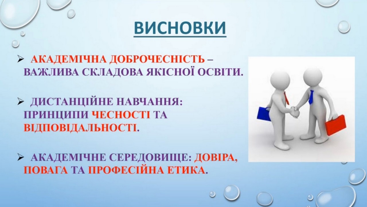 О 15:30 відбувся вебінар «Доброчесність перемагає» для студентів 4 курсу 3 групи, спеціальності 014 Середня освіта (Фізична культура) першого (бакалаврського) рівня вищої освіти Навчально-наукового інституту фізичної культури, спорту та спеціальної освіти, який провів кандидат педагогічних наук, старший викладач Кучеренко Геннадій Васильович. Під час заходу учасники обговорили значення доброчесності як практичної стратегії досягнення успіху. Було підкреслено, що перемога доброчесності полягає у формуванні цілісної особистості, здатної до чесної конкуренції завдяки реальним знанням і високим моральним стандартам. Учасники відзначили, що кожен свідомий вибір на користь чесності сприяє формуванню середовища, де успіх визначається працею та талантом, а не маніпуляціями.