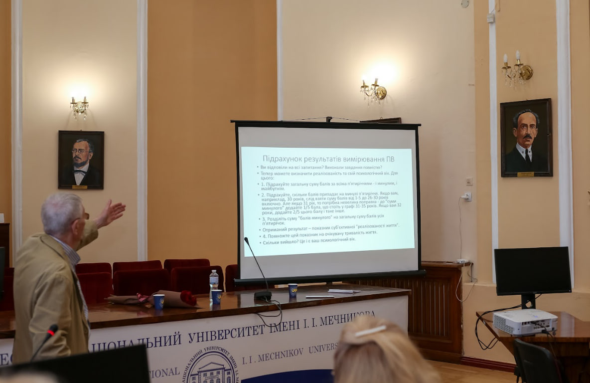 Захід відбувся в Одеському національному університеті імені І. І. Мечникова в залі засідань Вченої ради та був організований за ініціативою Південно-Українського відділення Соціологічної асоціації України (установа-партнер) під керівництвом проф. Олени Лісеєнко. На пленарному засіданні прозвучали надзвичайно змістовні та концептуальні доповіді ювіляра, проф. Євгена Головахи, проф. Інни Голубович, проф. Наталії Родіної. Дискусії продовжилися під час круглого столу, де учасники обговорювали методологічні та практичні виміри дослідження психологічного часу, проблеми ментального здоров’я та соціокультурні детермінанти особистісного розвитку в умовах суспільних криз. Важливою подією стала також презентація монографії С. Дембіцького, Є. Головахи та В. Степаненка «Стресові стани населення України в контексті війни: досвід соціологічного вивчення», яка репрезентує результати сучасних міждисциплінарних досліджень соціальних наслідків війни. Участь у конференції та залучення до обговорення її проблематики стали цінним досвідом для здобувачів освіти, оскільки сприяли формуванню дослідницьких та аналітичних компетентностей, критичного мислення, уміння інтерпретувати результати міждисциплінарних досліджень, комунікативних навичок та академічної культури дискусії. Це, своєю чергою, підвищує їхню готовність до наукової діяльності та професійної реалізації. Тематика заходу має безпосередній зв’язок зі специфікою ОПП «Політологія. Українські та європейські політичні студії», адже розкриває соціокультурні та психологічні чинники суспільних трансформацій, що є необхідною складовою аналізу сучасних політичних процесів, розвитку демократичних практик та формування політичної культури в українському та європейському контекстах. Здобувачі освіти другого (магістерського) рівня вищої освіти ОПП «Політологія. Українські та європейські політичні студії» разом із Гарантом програми доц. Інною Пронозою взяли участь у науково-практичній конференції «Психологічний час у вимірах особистості, культури, соціуму», присвяченій ювілею видатного українського соціолога й психолога, директора Інституту соціології НАН України, члена-кореспондента НАН України Євгена Головахи.