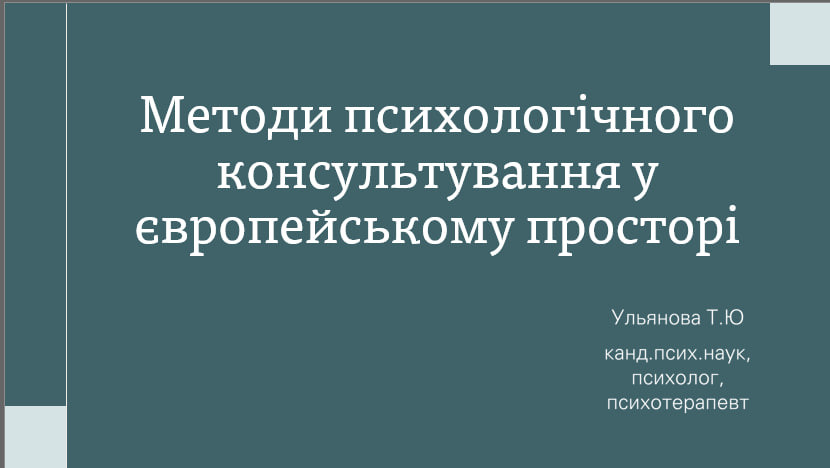 On September 24, 2025 at 2:30 p.m., as part of the activities on European integration into the educational process and the topics of scientific research for 2025, the Department of General and Differential Psychology of the state institution "South Ukrainian National Pedagogical University named after K. D. Ushynsky" held an online master class for students of the specialty "Psychology" on the topic: "Methods of Psychological Counseling in the European Space".
