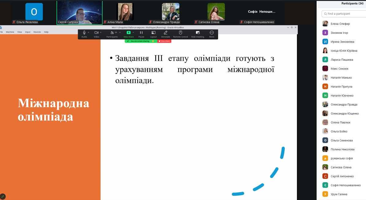 During the lecture, the participants got acquainted with the formation and development of the history of subject Olympiads in Ukraine and the world, learned about their role in identifying and supporting talented youth. Modern approaches to organizing All-Ukrainian Olympiads, changes and innovations of the current academic year, as well as the features of holding international subject Olympiads were highlighted.