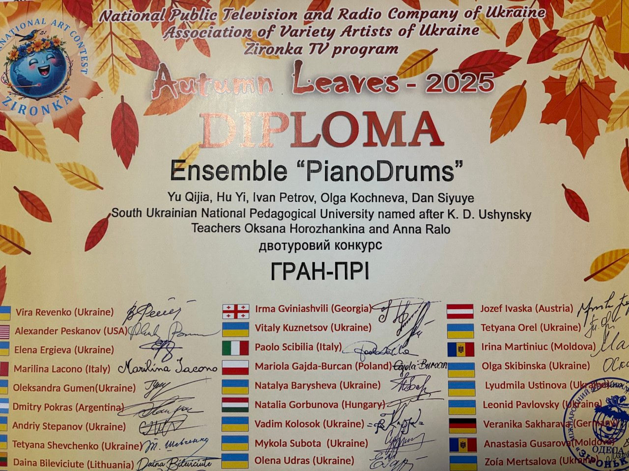 On November 19-23, 2025, the international two-tour festival-competition of arts “Autumn Leaves – 2025” was held in Odesa. Concert performances of participants in the nominations “Academic Vocal” and “Instrumental Genre” took place live in the premises of the Evangelical Reformed Presbyterian Church. Our students competed in the same category with students of Odesa National Academy of Music named after A.V. Nezhdanova and received an unprecedented number of awards! It was a real struggle, but our talents proved their mastery: