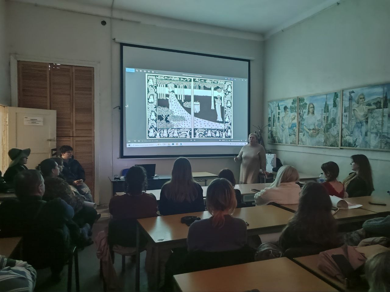 On March 5, 2026, the Faculty of Art and Graphics hosted a guest lecture by Tetyana Goranska, a senior lecturer at the Department of Ukrainian and Foreign Literatures of the Faculty of History and Philology, in which she presented a new elective discipline “Literary Images and Plots in the Visual Arts”. The organizer and moderator of the meeting was Olena Spasskova, a candidate of art history, a lecturer at the Department of Theory and Methods of Methods of Decorative and Applied Arts and Graphics.
