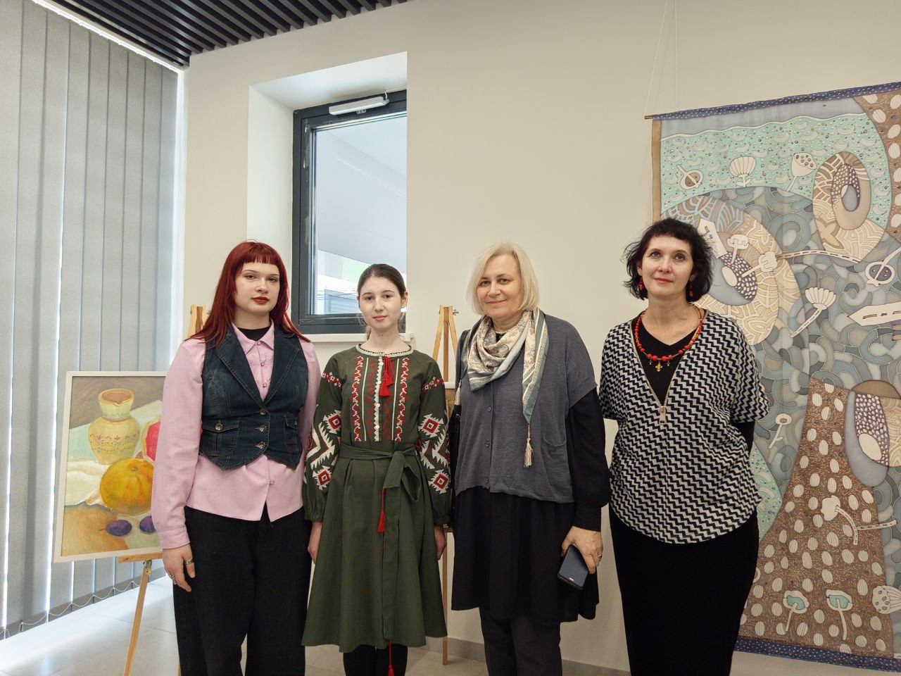 The presentation of the exhibition was opened by the speeches of the Dean of the Faculty of Fine Arts and Design Ana Simak, the Head of the Department of Painting Lyudmila Moisei and the teaching staff Lyudmila Mokan-Vozyan from Chisinau and Olha Kotova and Lyudmila Bohaychuk from the Faculty of Fine Arts of Ushynsky University. The representatives of student youth from Odesa were Sofia Markitan and Anastasia Grudka. This initiative is part of the project "Cultural Dimensions and Identification of the Use of Fine Arts in Higher Art Education", which is supported within the framework of the Program for Improving the Quality of Scientific Research for 2025-2026.