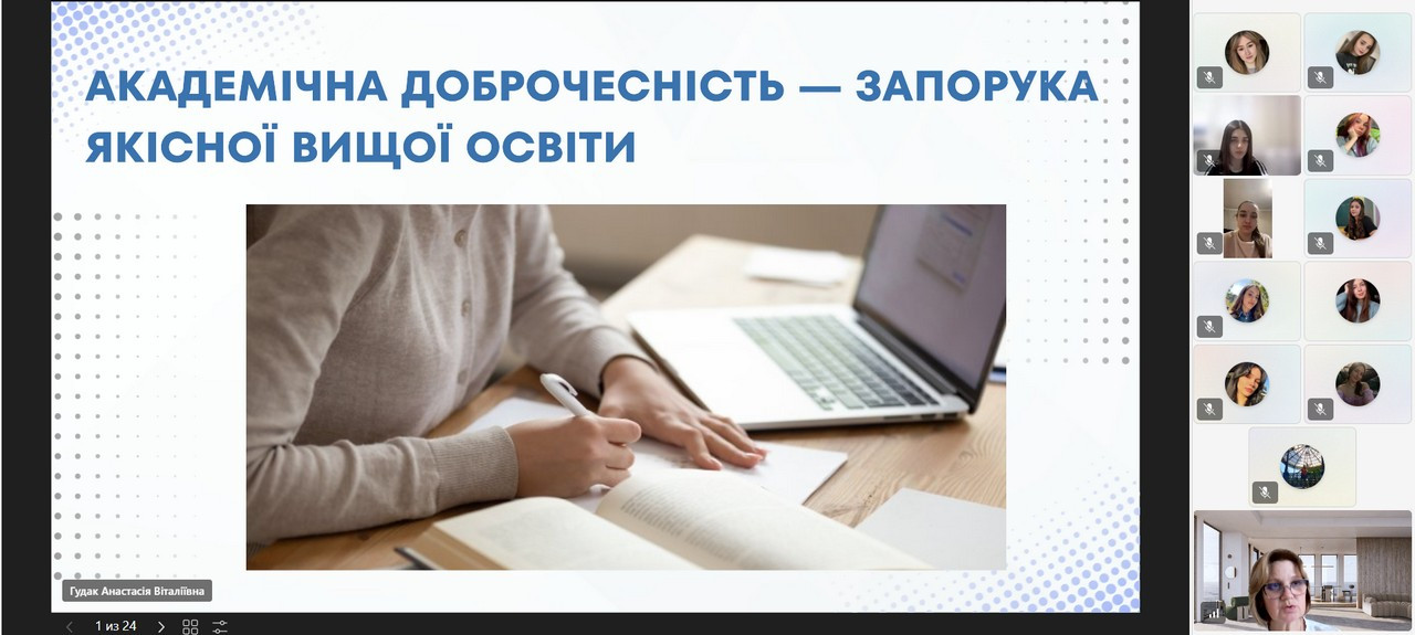 On March 18, 2026, within the framework of the “Week of Academic Integrity at Ushynsky University”, a thematic curatorial hour “Academic Integrity as a Key to Quality Higher Education” was held in the group of 1st year masters of the Faculty of History and Philology, specialty A4 Secondary Education (Ukrainian Language and Literature). Assoc. Prof. Bandura T. Y., the curator of the group, emphasized academic integrity as an important prerequisite for obtaining quality higher education and implementing educational and scientific activities at the university, establishing trust in society in the results of studies and scientific achievements. The special guest of the event was the head of the authorized unit for the prevention and detection of corruption at the university, S. L. Derevyankin, who familiarized the students with the main articles of the Law on Integrity and the legal and organizational mechanisms for the formation of academic integrity.