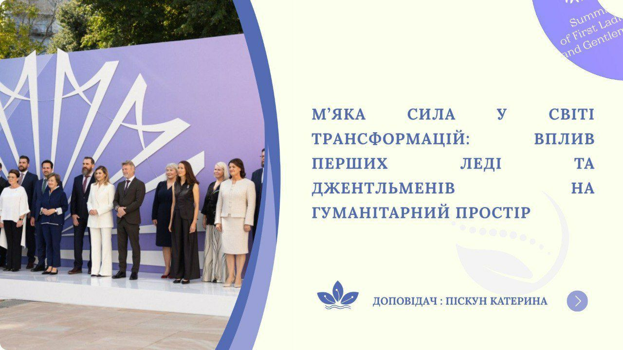 У сучасному світі відбуваються процеси трансформації, посилюються агресія і розбрат, однак гуманітарні ініціативи перших леді та джентльменів виявляються здатними впливати на політичний порядок денний. Перша леді України Олена ЗЕЛЕНСЬКА активно популяризує та реалізує міжнародну координацію освітніх, культурних ініціатив «м’яких дипломатів», перетворюючи гуманітарні питання на важливі складові міждержавних відносин. Діяльність перших леді та джентльменів є проявом нового типу лідерства, оскільки їх публічні дії, культурні й освітні проєкти укріплюють єдність та стійкість всередині країни, покращають імідж країни назовні. Пані Олена ЗЛЕНСЬКА використовує платформу щорічних самітів перших леді та джентльменів для обміну досвідом публічної дипломатії, перетворює на надзвичайно дієвий інструмент м’якої сили в умовах війни.