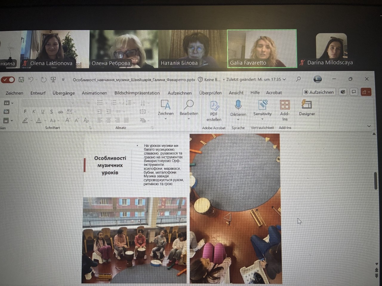 Згідно плану заходів з євроінтеграції в ННІМПМСП 31 жовтня 2025 року було проведено онлайн-зустріч з випускницями факультету музичної та хореографічної освіти, що працюють за спеціальністю в країнах Європи. Зустріч була дуже цікавою і продуктивною для аспірантів, що навчаються на ОНП «Мистецька педагогіка вищої освіти». Своїм практичним досвідом роботи у європейських освітніх системах поділилися випускниці факультету Олена Лактіонова (Німеччина) та Галина Фаваретто (Швейцарія). Вони створили чудову нагоду порівняти методики навчання музичного мистецтва та програми, за якими навчалися вони, і за якими навчають майбутніх учителів в Європейських країнах. Олена Лактіонова працює в школі Берліну, Галина Фаваретто – в школах Берну (Швейцарія), вони одразу зробили порівняння в системах і в умовах навчання. Наголосили на тому, що в цих країнах дуже цінуються уроки музичного мистецтва. Отримана інформація дуже важлива для аспірантів в контексті музично-педагогічної компаративістики.