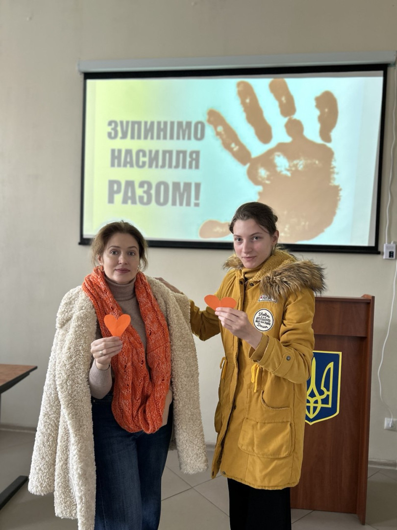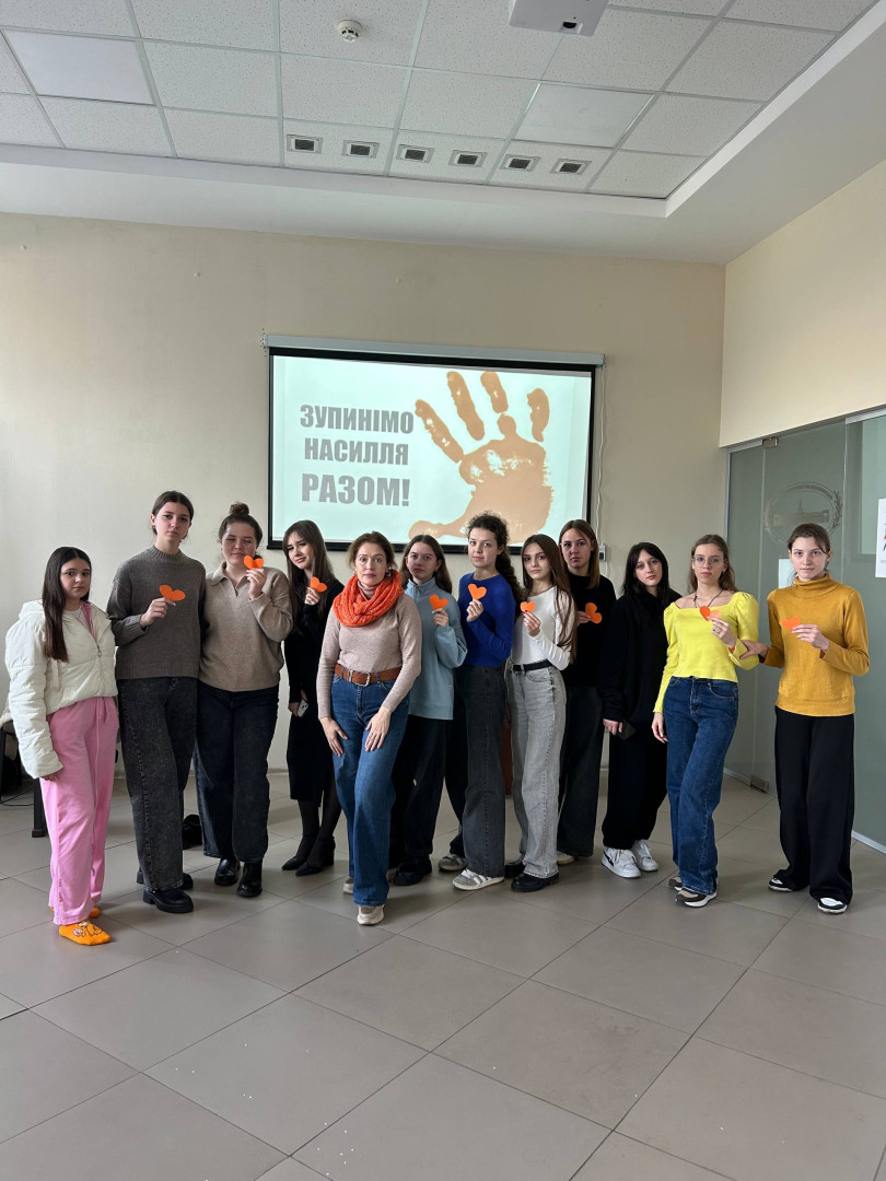 27 листопада практичний психолог Сазонова Ірина провела інформаційно-просвітницьку зустріч для студентів Університету Ушинського щодо проведення акції. Під час зустрічі висвітлювались масштаби проблеми, але й доводилось до учасників , що насильство не повинно залишатися нормою.