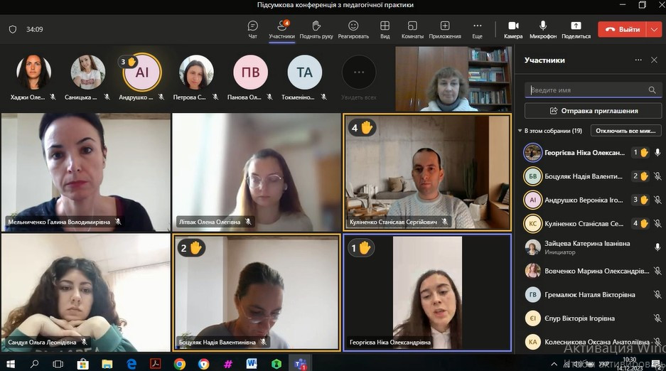 14 та 21 грудня були проведені підсумкові конференції з виробничої (педагогічної з англійської мови та зарубіжної літератури в профільній школі) практики зі здобувачами вищої освіти заочного та денного відділення, за другим (магістерським) рівнем, 1 року навчання освітньо-професійної програми «Середня освіта (Англійська мова і зарубіжна література)» за спеціальністю 014.02 «Середня освіта (Мова і зарубіжна література (англійська))».