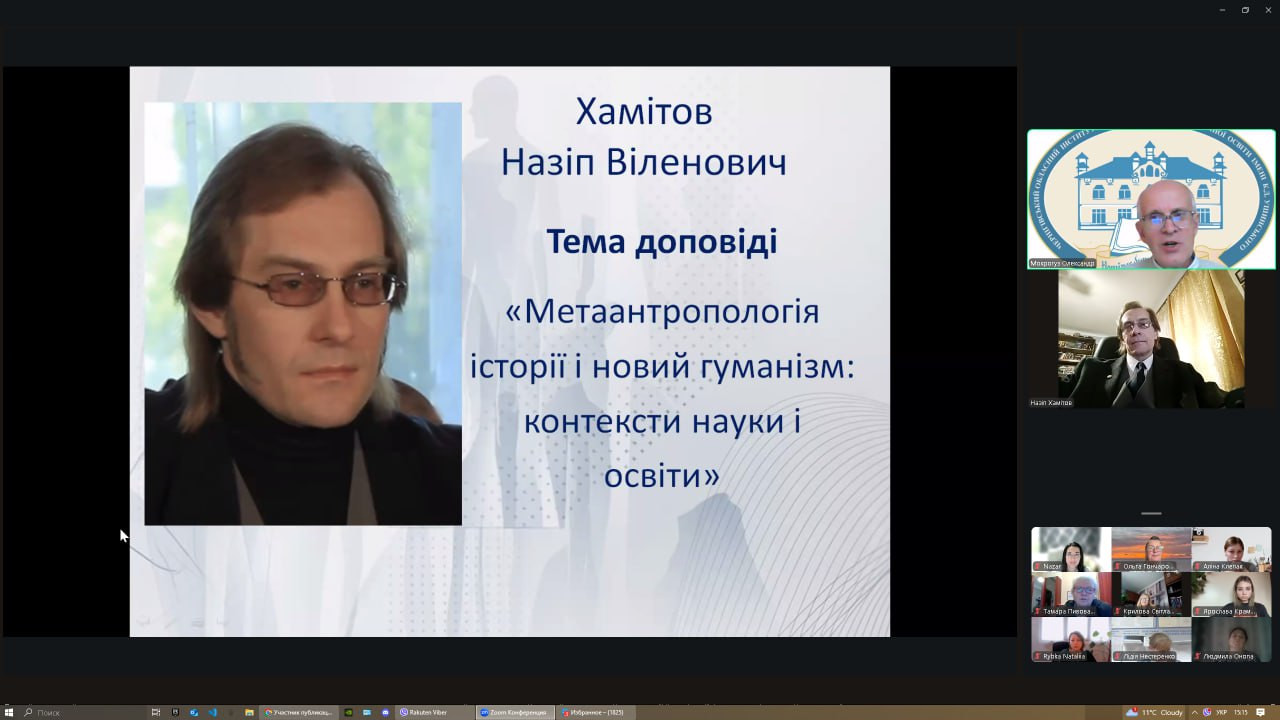 - Хамітов Назіп Віленович, член-кореспондент НАН України, доктор філософських наук, професор, провідний науковий співробітник Інституту філософії ім. Г. С. Сковороди НАН України, Президент Міжнародної асоціації філософського мистецтва. Тема виступу: «Метаантропологія історії і новий гуманізм: контексти науки і освіти».