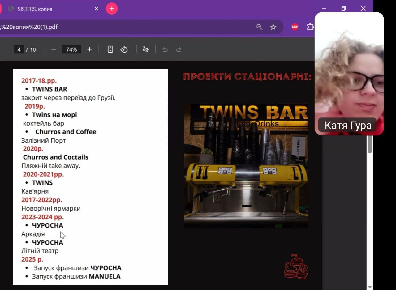 На запрошення к. філос. н. Катерини Ткаченко в межах вивчення навчальної дисципліни «Основи підприємництва» відбулася зустріч з експертом-практиком, засновницею проєкту Twin Sisters Катериною, підприємицею з понад 18-річним досвідом у сфері HoReCa та фестивальної культури на тему «Бізнес як культурний продукт: їжа, бренд і спільнота», що стала методологічною рамкою для осмислення підприємництва як форми культуротворення. У фокусі обговорення розуміння бізнесу не лише як економічної діяльності, а як простору формування сенсів, соціальних зв’язків і міської ідентичності. Підприємництво розглядалось як інтегративний феномен, що поєднує економічні, соціальні та культурні виміри. Спікерка поділилися практичним досвідом створення та розвитку гастрономічних брендів «Чуросна», «Manuela» та «Twins Bar», розкривши бізнес не лише як економічну модель, а як культурний продукт, що формує спільноту, цінності та міську ідентичність. Зустріч стала прикладом поєднання теоретичних засад підприємництва з реальними кейсами функціонування малого та середнього бізнесу в креативних індустріях. Особливу увагу було приділено питанням: формування бренду як соціокультурного феномену, жіночого лідерства у підприємницькому середовищі, ролі гастрономії у створенні культурного простору міста, побудови спільнот навколо бізнес-проєктів. До зустрічі також доєдналися здобувачі 1-го року навчання разом із викладачкою ОК «Теорія і практика презентації проєктів» проф. Оксаною Петіновою, адже представлений кейс став прикладом практичного застосування теоретичних засад проєктної комунікації, сторітелінгу та публічної репрезентації ідей. Аналізуючи досвід створення та розвитку гастрономічних брендів, здобувачі мали можливість простежити, як формується цілісна презентація проєкту – від концептуальної ідеї та ціннісної пропозиції до візуалізації, комунікаційної стратегії та взаємодії з цільовою аудиторією. Зустріч дозволила осмислити бренд як проєктний наратив, у якому презентація виступає не лише інструментом просування, а способом конструювання сенсів, довіри та спільноти. Практичний досвід спікерки продемонстрував важливість уміння презентувати бізнес-проєкт у соціокультурному контексті, адаптувати повідомлення до різних аудиторій та вибудовувати комунікацію, що поєднує економічну доцільність із культурною місією.