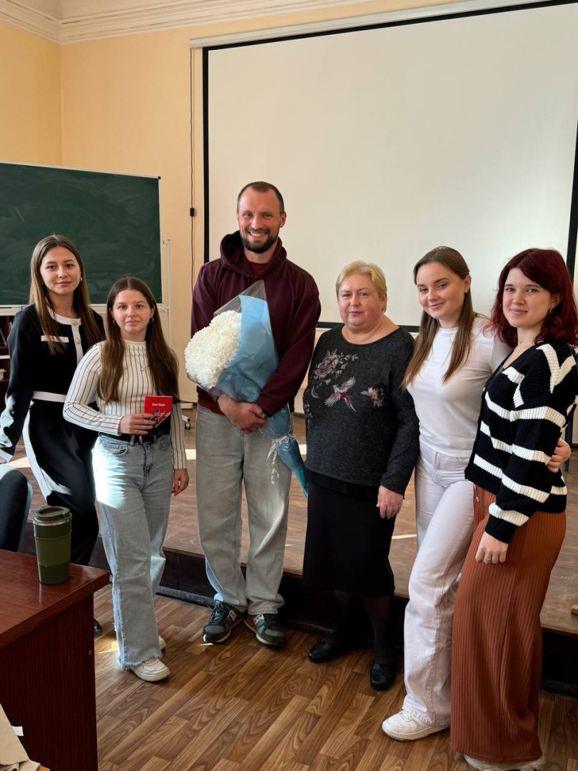 16.10.2024 року відбулася зустріч з ветераном ЗСУ, відомим українським режисером та письменником Володимиром Омельченком та студентами 1 та 2 курсів історико-філологічного факультету. Під час зустрічі було презентовано його книгу "Піски півдня" - щирі роздуми людини, яка пройшла шлях від учасника революції Гідності, добровольця до офіцера ЗСУ, і писала свою книгу в коротких перервах між боями.