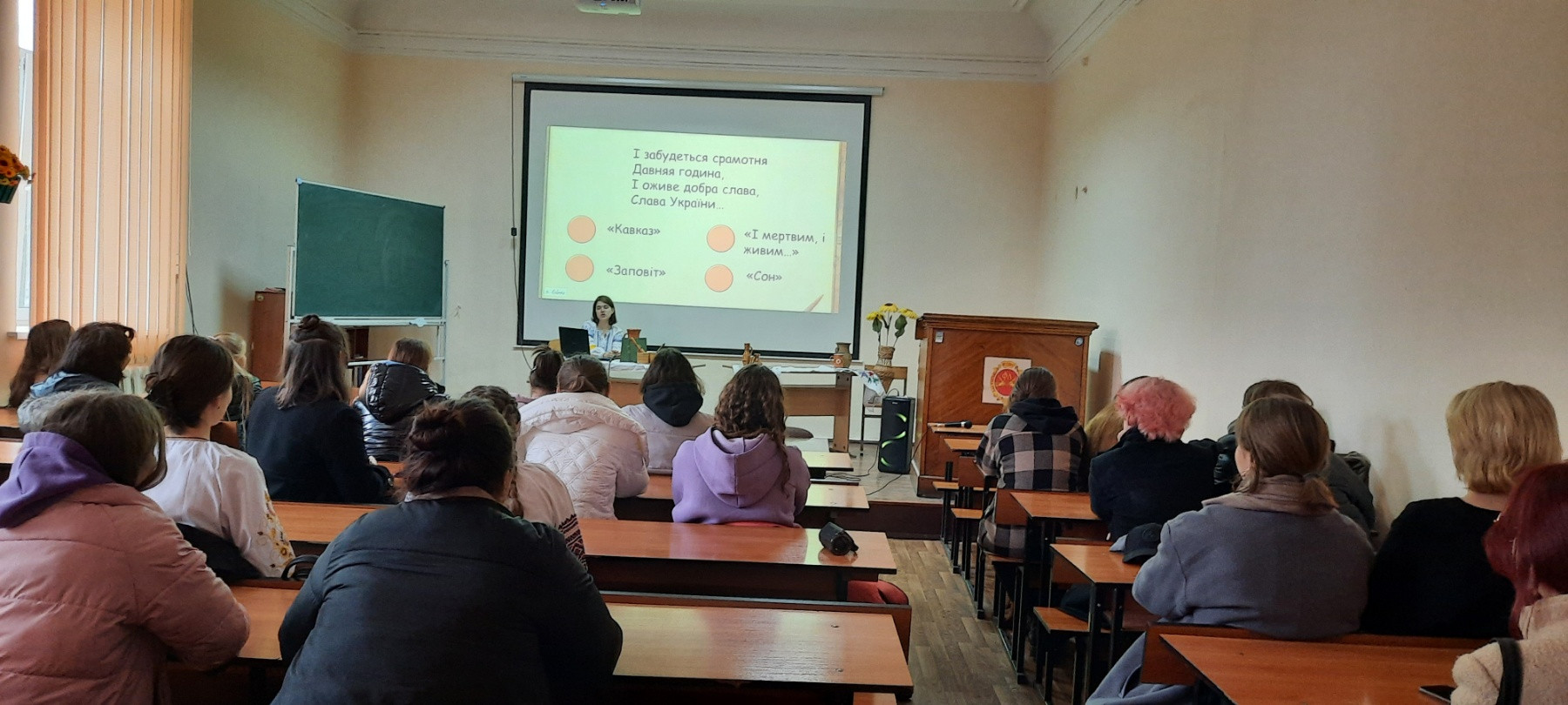 17 листопада відбувся перший етап ХІІІ Міжнародного мовно-літературного конкурсу учнівської та студентської молоді імені Тараса Шевченка. В урочистому відкритті взяли участь здобувачі й викладачі історико-філологічного факультету. Студенти першого курсу Ірина Лободенко, Анастасія Чучупака, Валерій Акімов, Олеся Кугут продекламували кращі поезії Тараса Шевченка. Студенти взяли участь у вікторині на знання лірики поета. Музичним подарунком для присутніх стала пісня про Кобзаря від чарівної гості заходу, учениці КМ «Біляївська мистецька школа» (керівник-Руденко О.В.) Марти Яцишиної.